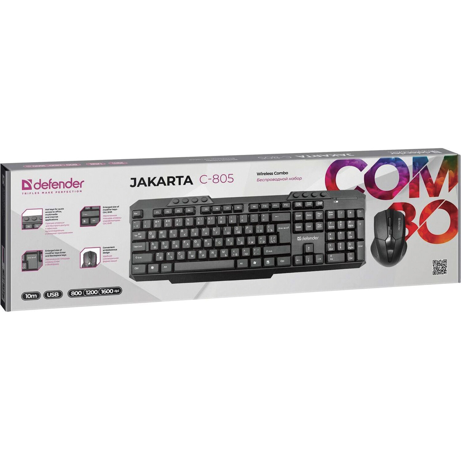 Набор беспроводной DEFENDER Jakarta C-805,клавиатура, мышь 3 кнопки+1 колесо-кнопка, черный, 45805
