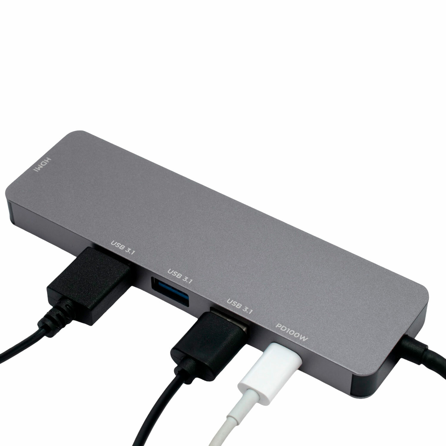 - Док-станция GEMBIRD Type-C 5 в 1: 3хUSB3.1, PD100W, HDMI, кабель 17 см, алюминий, UHB-D1