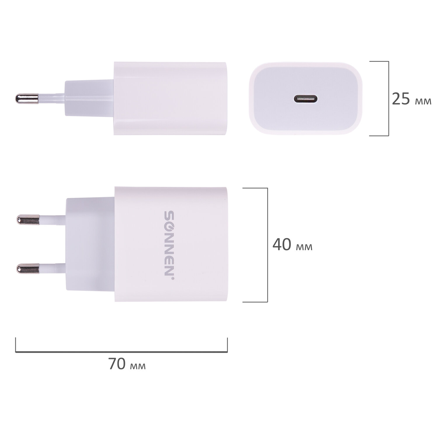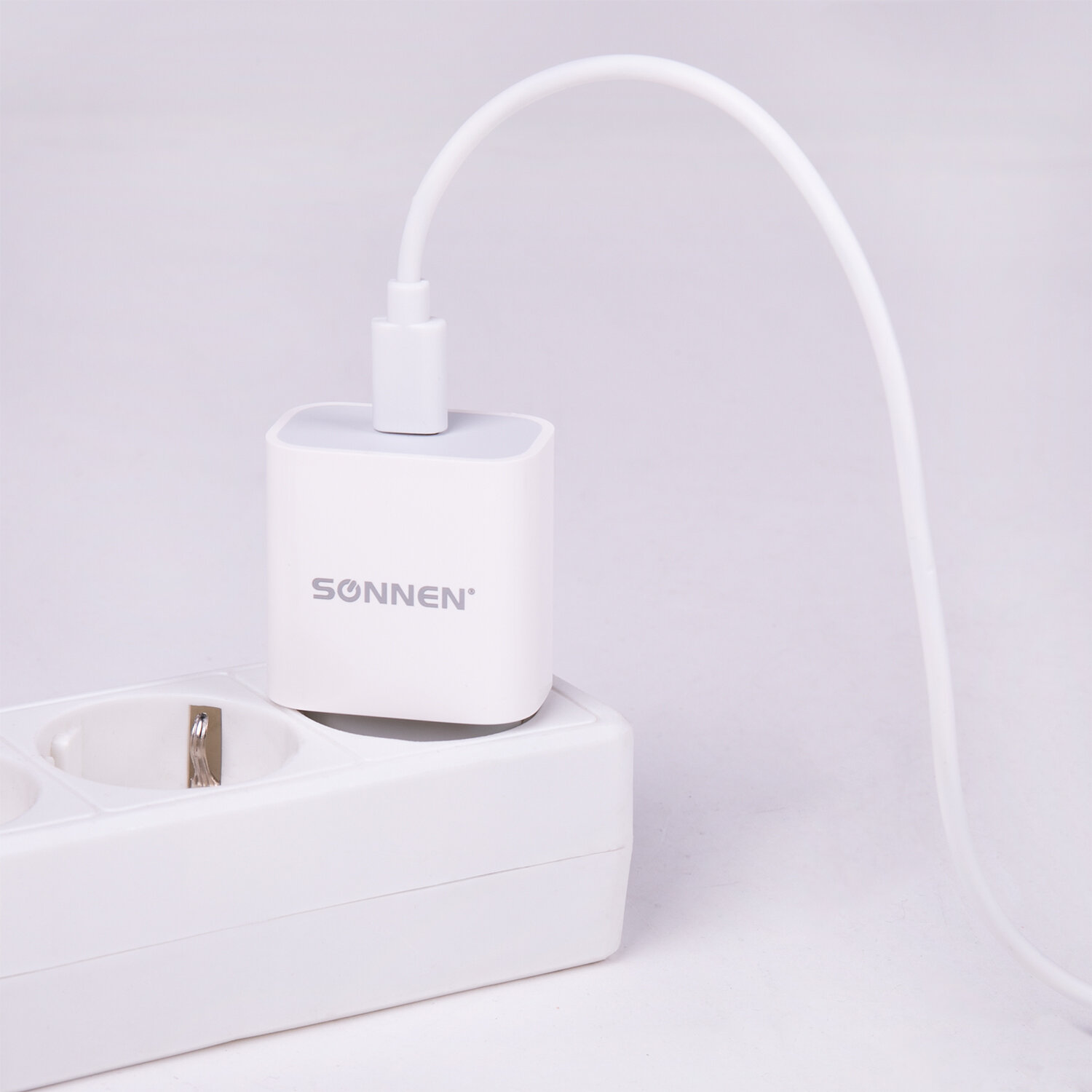 - Зарядное устройство быстрое сетевое (220 В) SONNEN, Type-C PD 20 Вт, 3 A, белое, 455507