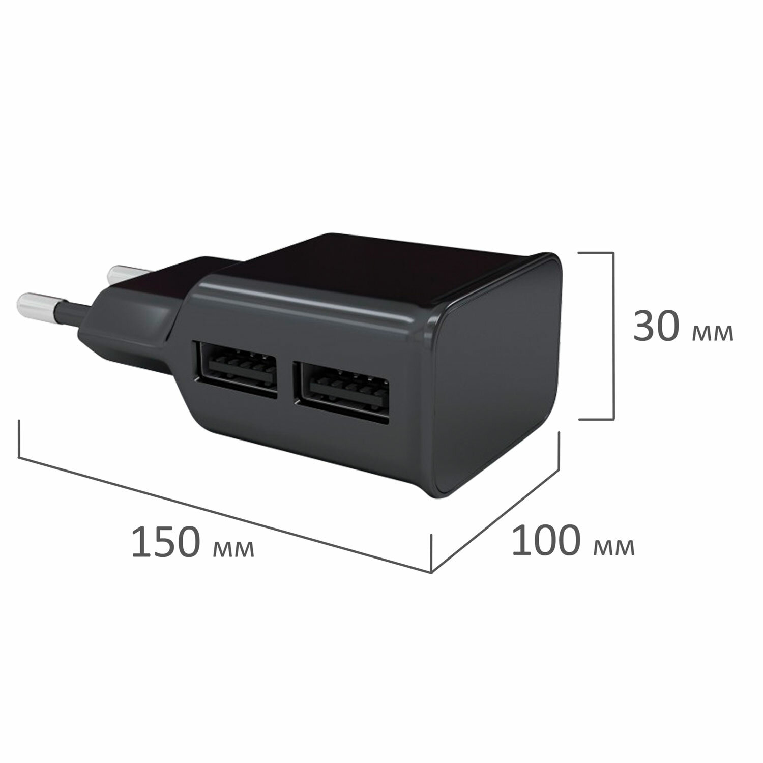 - Зарядное устройство сетевое (220 В) RED LINE NT-2A, 2 порта USB, выходной ток 2,1 А, черное, УТ000009404