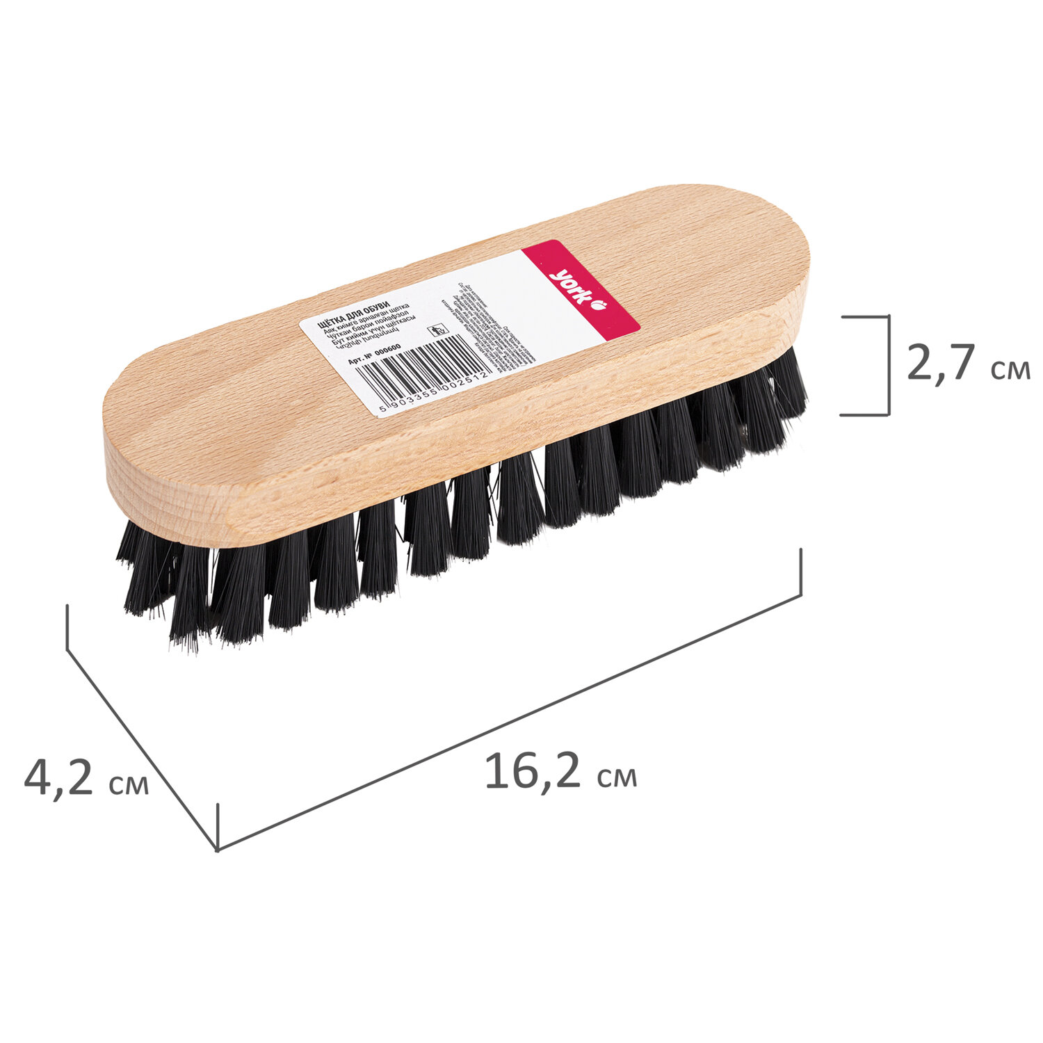 - Щётка для обуви/одежды, щетина 2,7 см средней жесткости, деревянная колодка 4,7х16,2х4,2 см, YORK, 660, 600