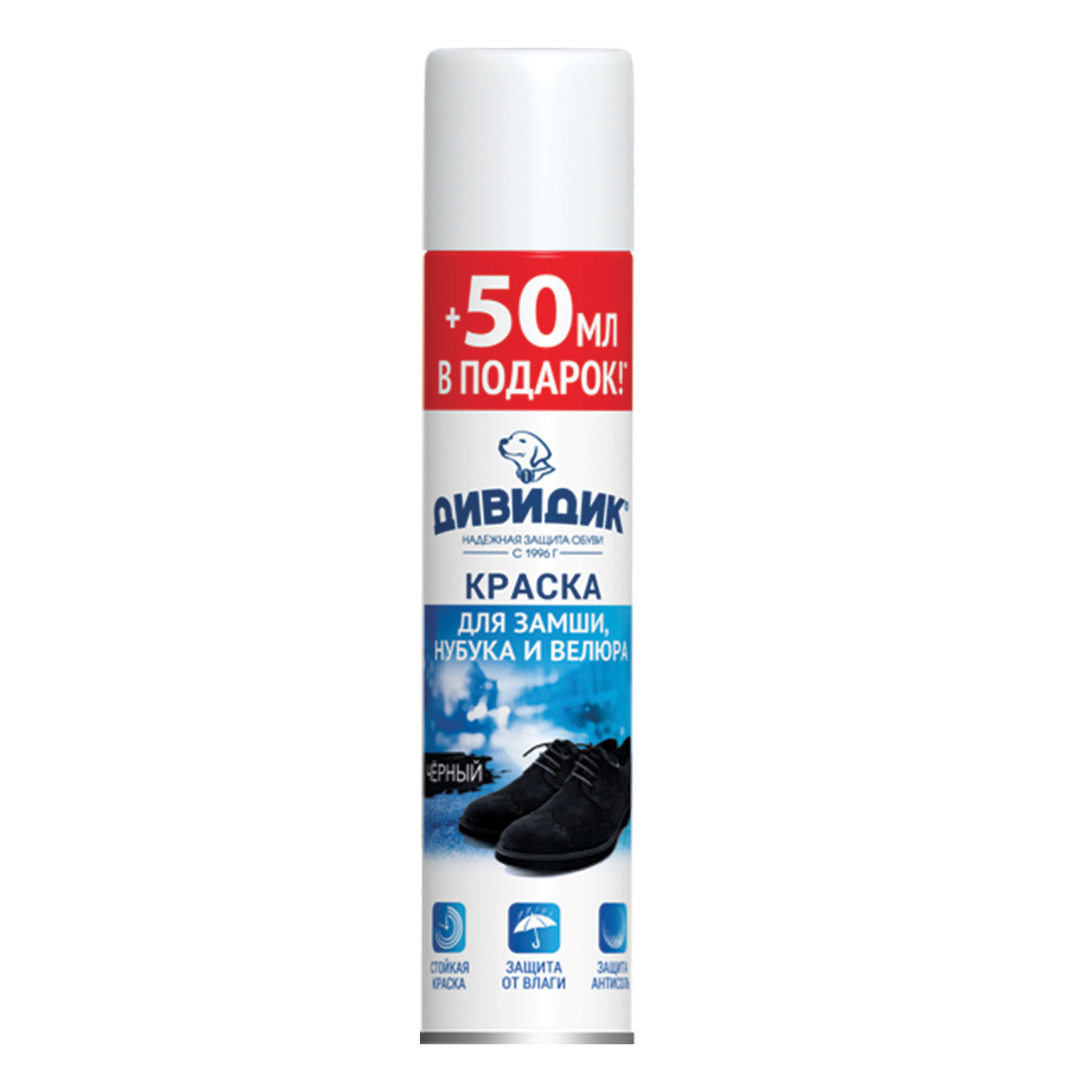 - Краска аэрозольная черная для обуви из замши, нубука и велюра 300 мл, ДИВИДИК, 4650056490568НШ
