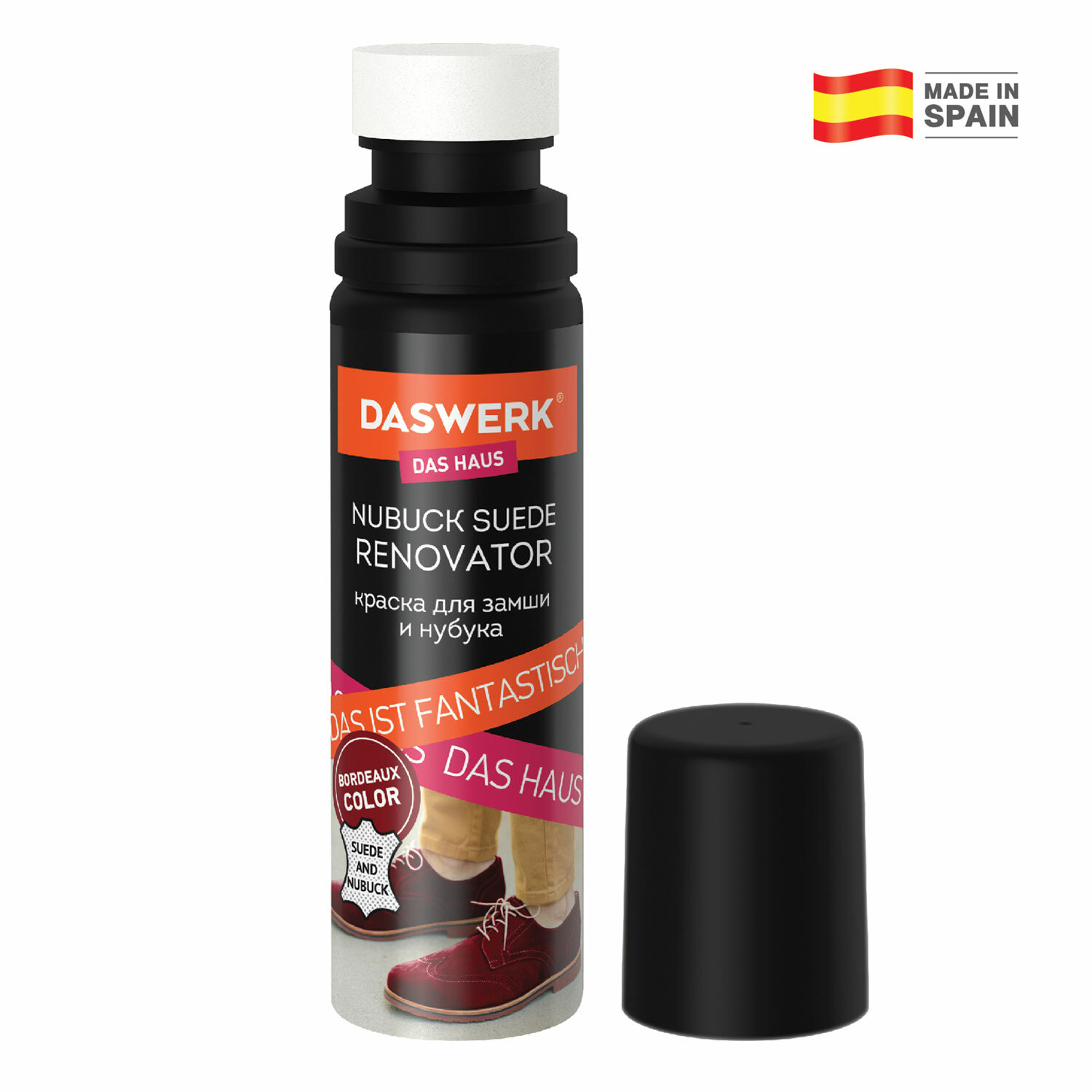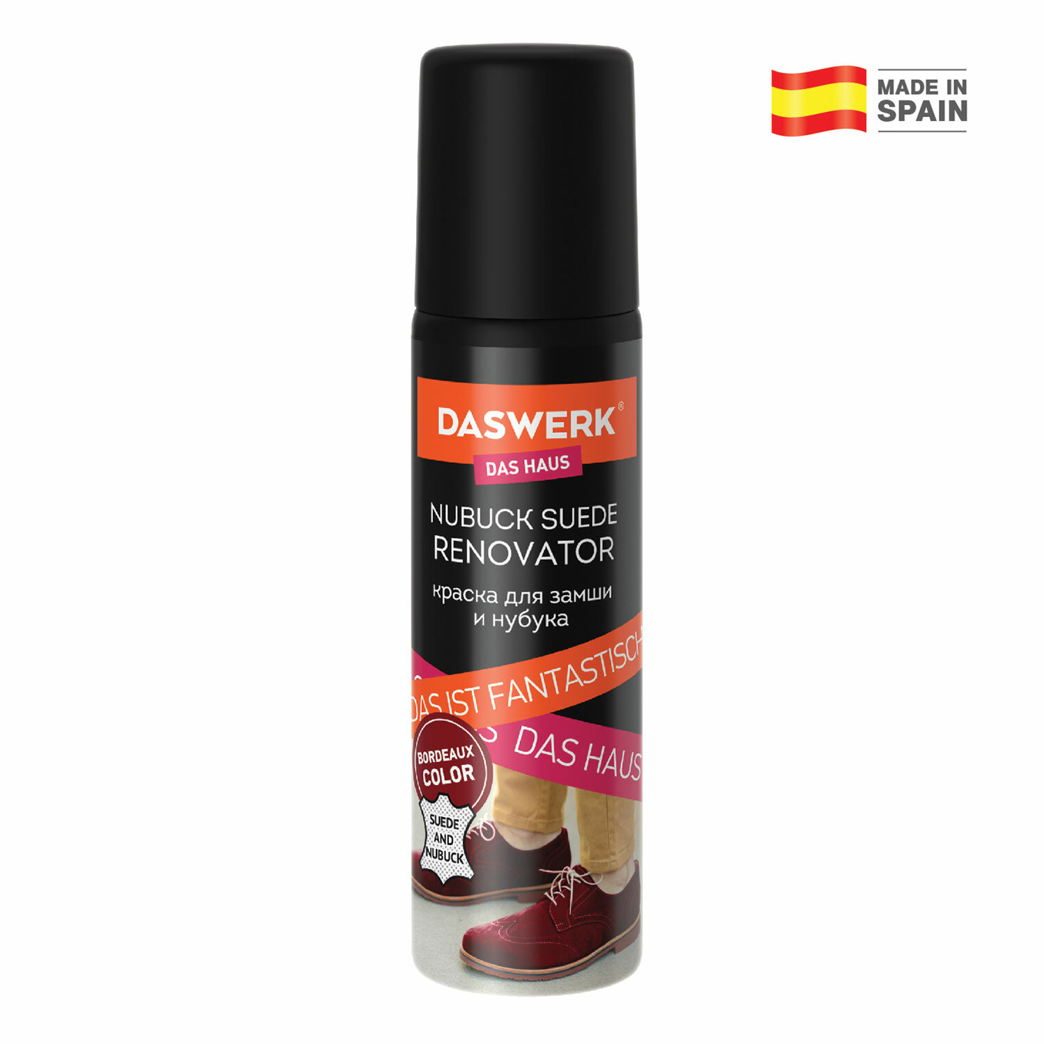 Краска для замши и нубука DASWERK не перекрашивает изделие, а обновляет и насыщает первоначальный цвет. Краской можно обновить выгоревший или затертый цвет обуви или одежды из замши или нубука или сделать оттенок более ярче и насыщенней. Средство выпущено в компактном флаконе объемом 75 мл.