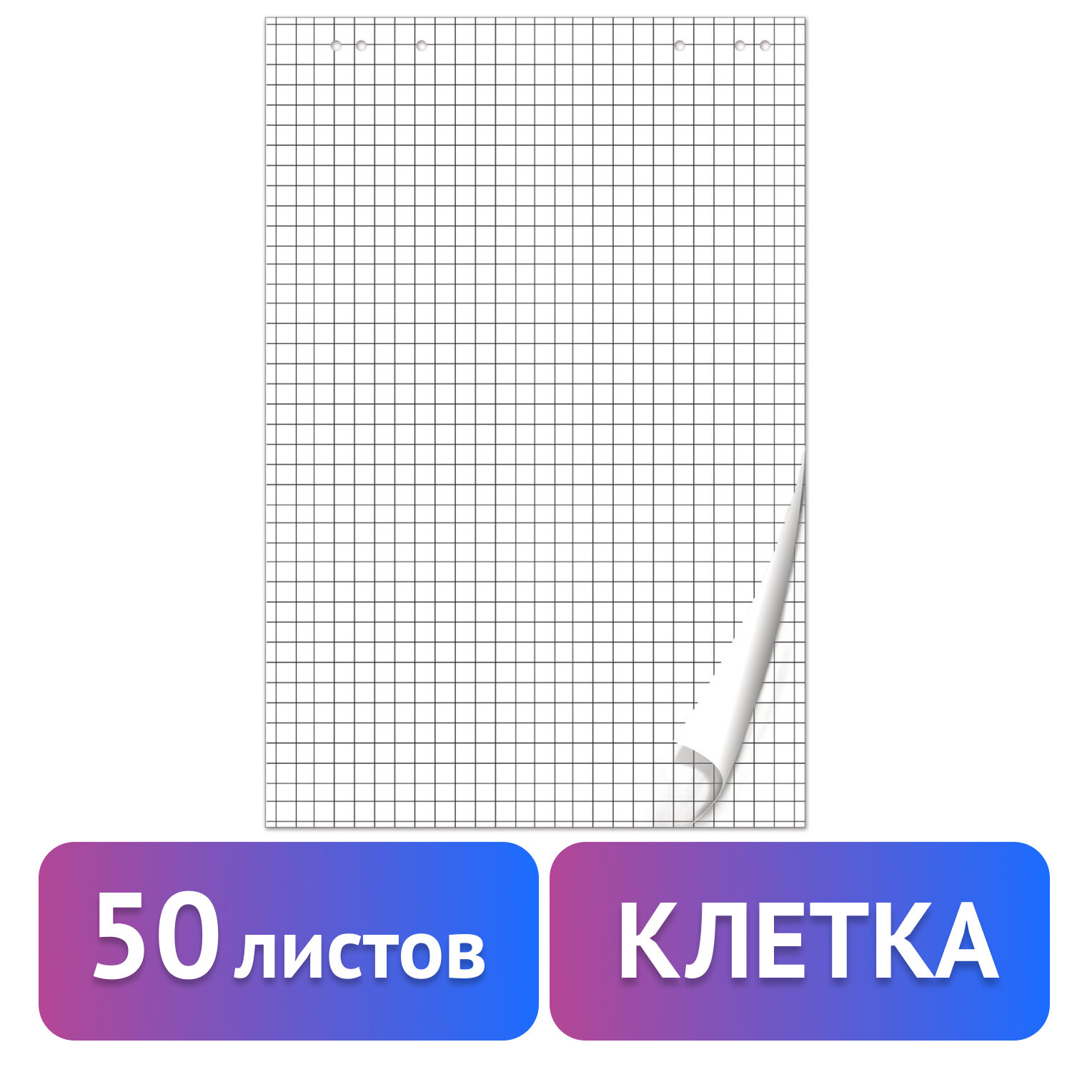 - Блокнот для флипчарта ПЛОТНЫЙ 80 г/м2, BRAUBERG, 67,5х98 см, 50 листов, белый (КЛЕТКА), 128647