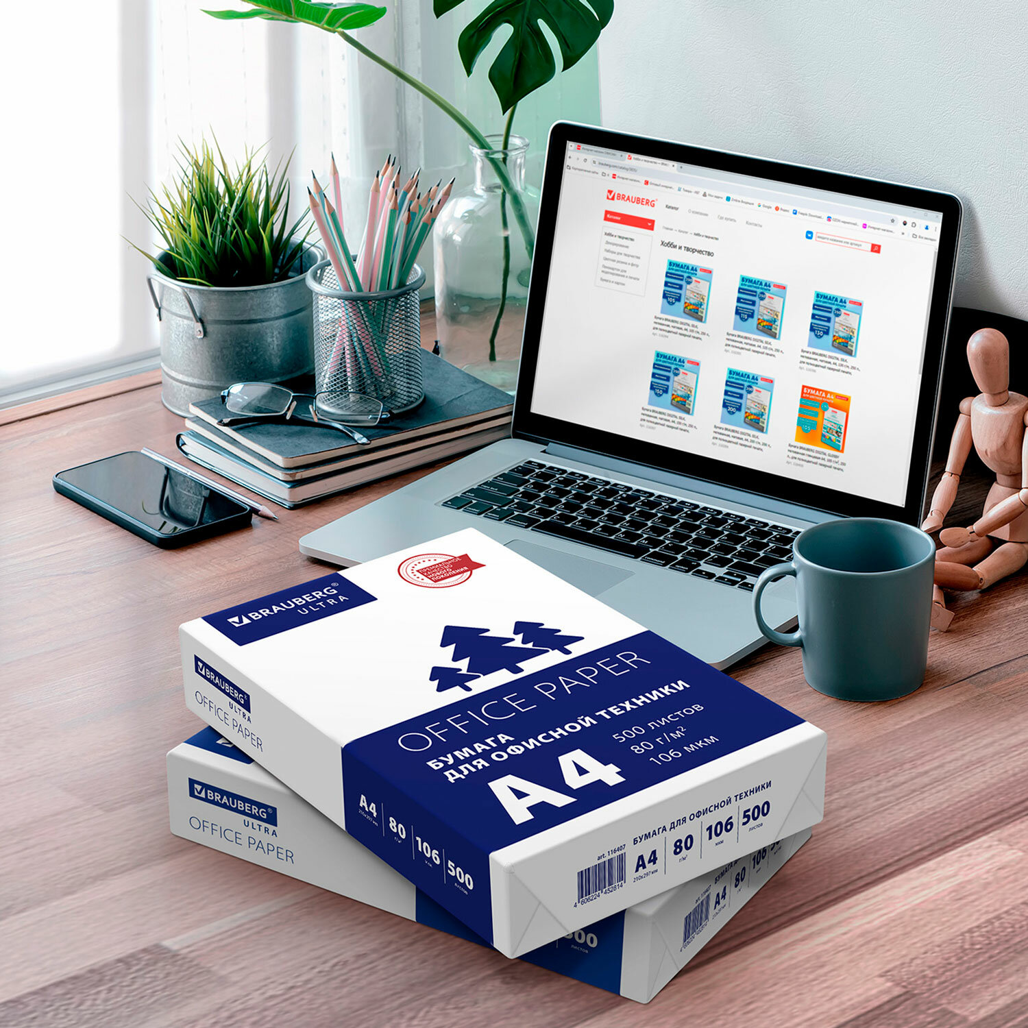 - Бумага офисная А4, 80 г/м2, 500 л., марка С, белизна 146% (CIE), BRAUBERG ULTRA, 116407