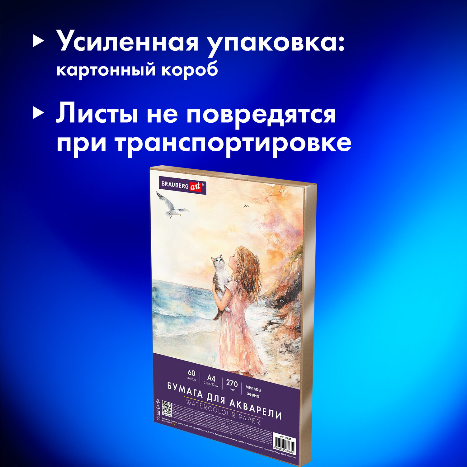 - Бумага для акварели А4 60 л., 270 г/м2, мелкое зерно, в коробке, BRAUBERG ART CLASSIC, "Вдохновение", 116887