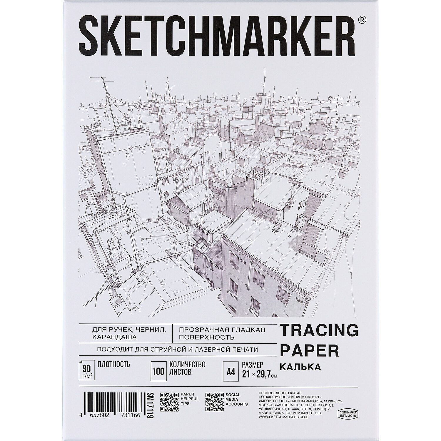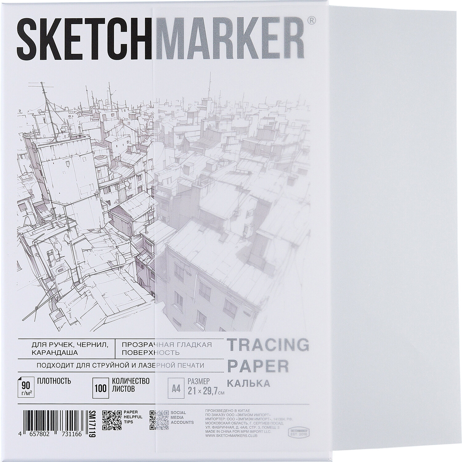 - Калька А4 для печати и творчества, 90 г/м2, 100 листов, SKETCHMARKER, SM17119