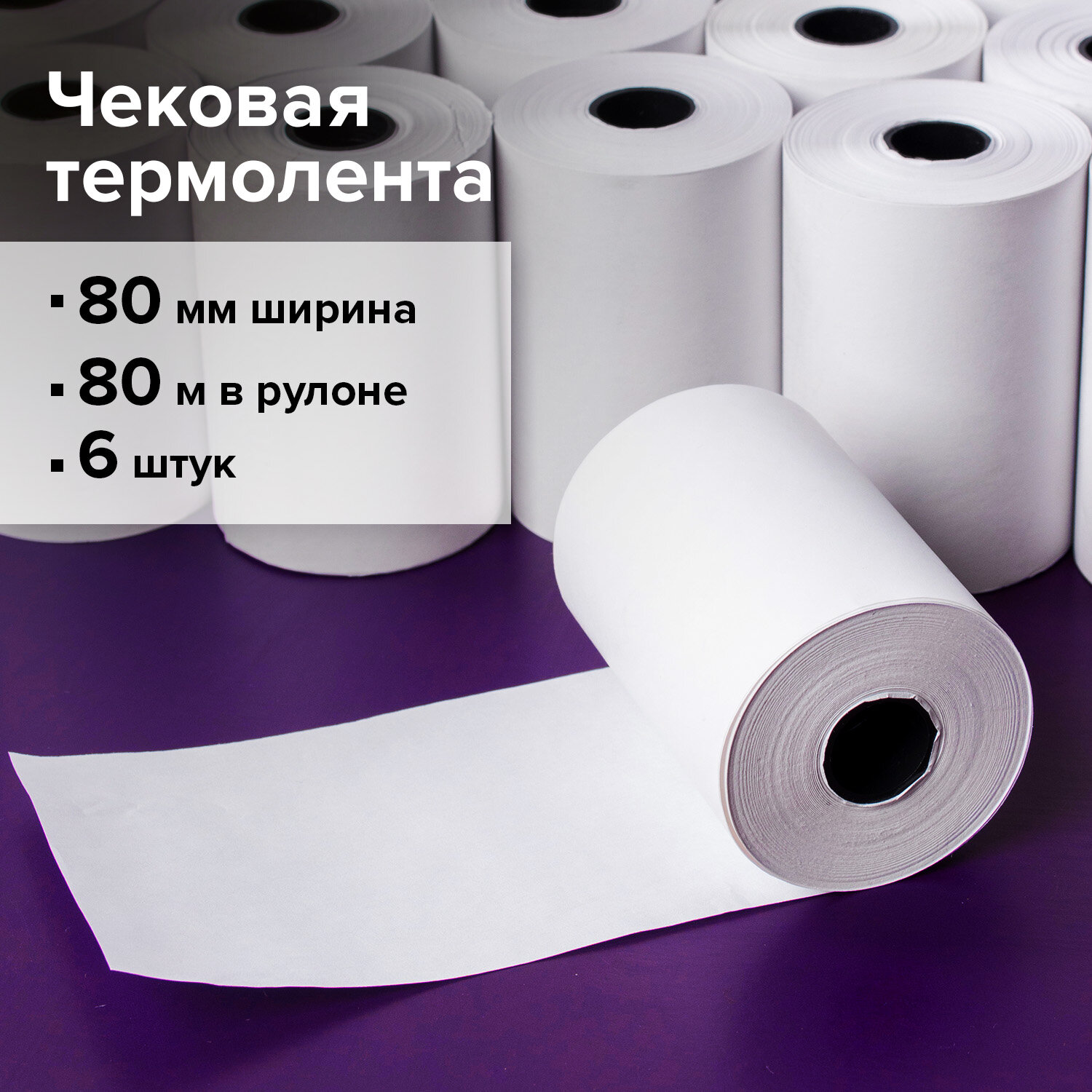 - Чековая лента ТЕРМОБУМАГА 80 мм (диаметр 80 мм, длина 80 м, втулка 18 мм) КОМПЛЕКТ 6 шт., BRAUBERG, 110896