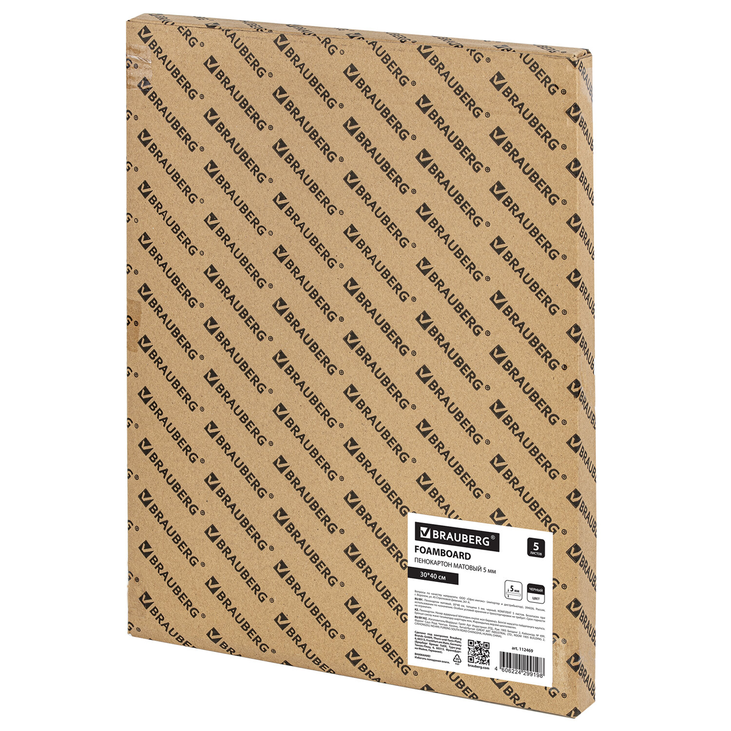 - Пенокартон матовый, 30х40 см, толщина 5 мм, черный, КОМПЛЕКТ 5 листов, BRAUBERG, 112469
