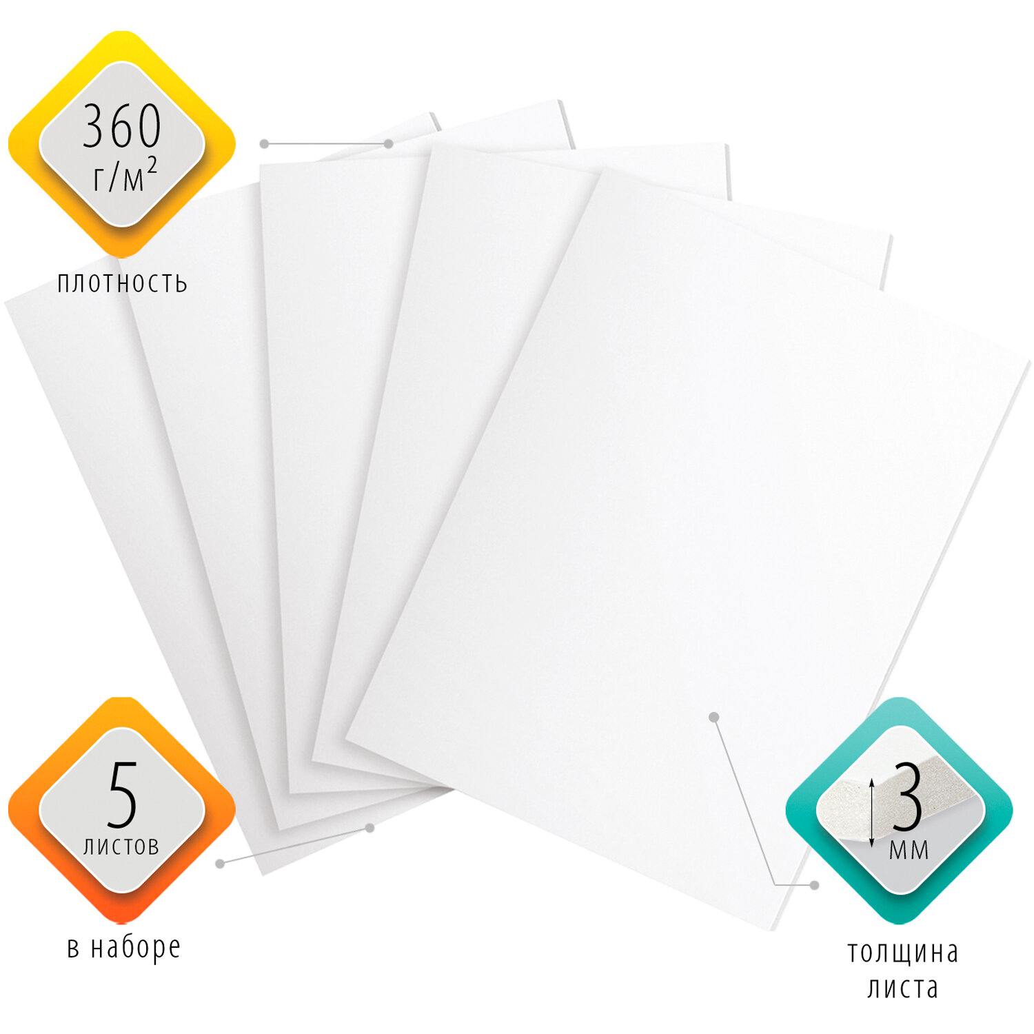 - Пенокартон матовый, 50х70 см, толщина 3 мм, белый, КОМПЛЕКТ 5 листов, BRAUBERG, 112470