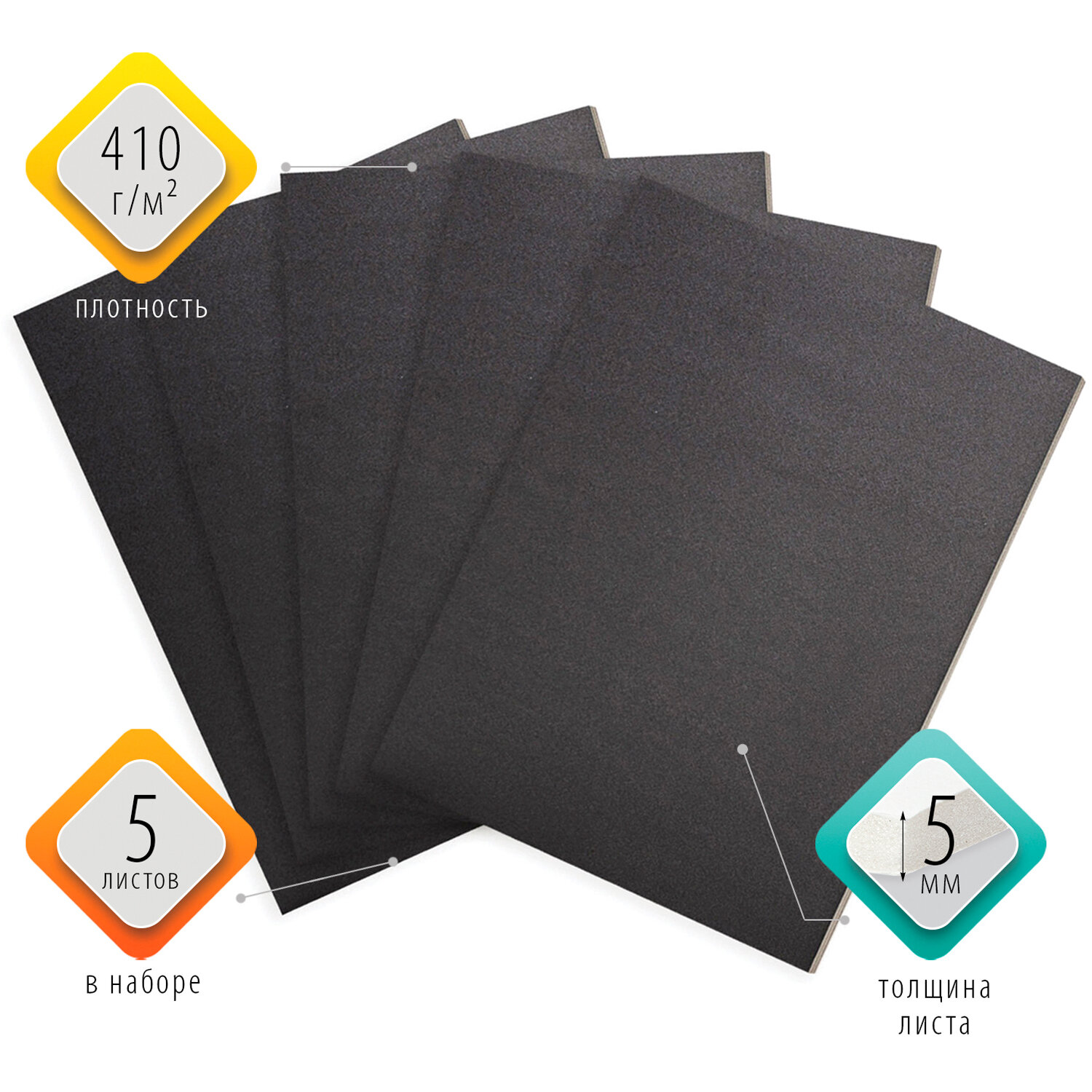 Черный пенокартон форматом 50х70 см толщиной 5 мм поставляется комплектом 5 листов, упакованных в гофрокороб с печатью.
