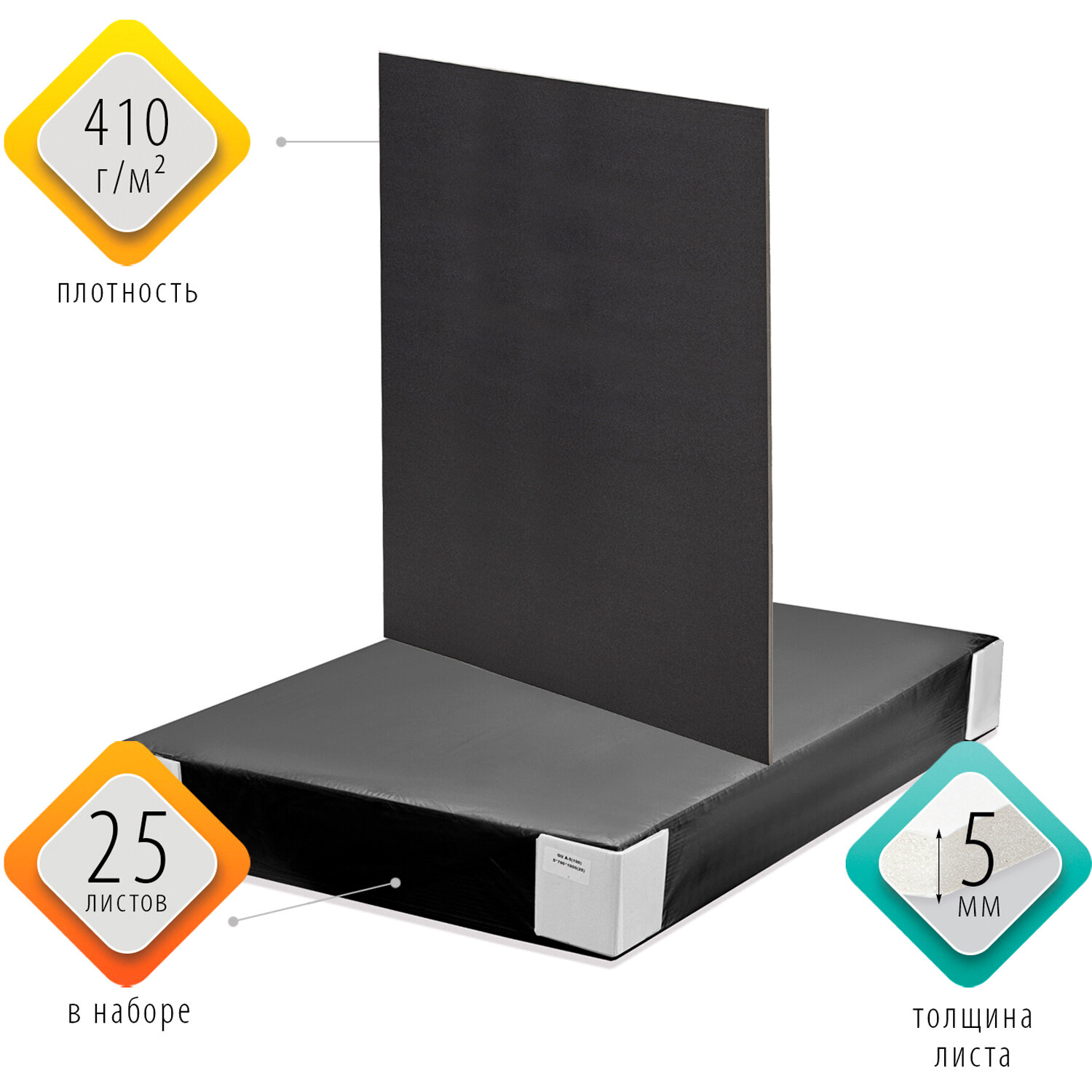 Черный пенокартон форматом 70х100 см толщиной 5 мм. Единица товара - 1 лист.