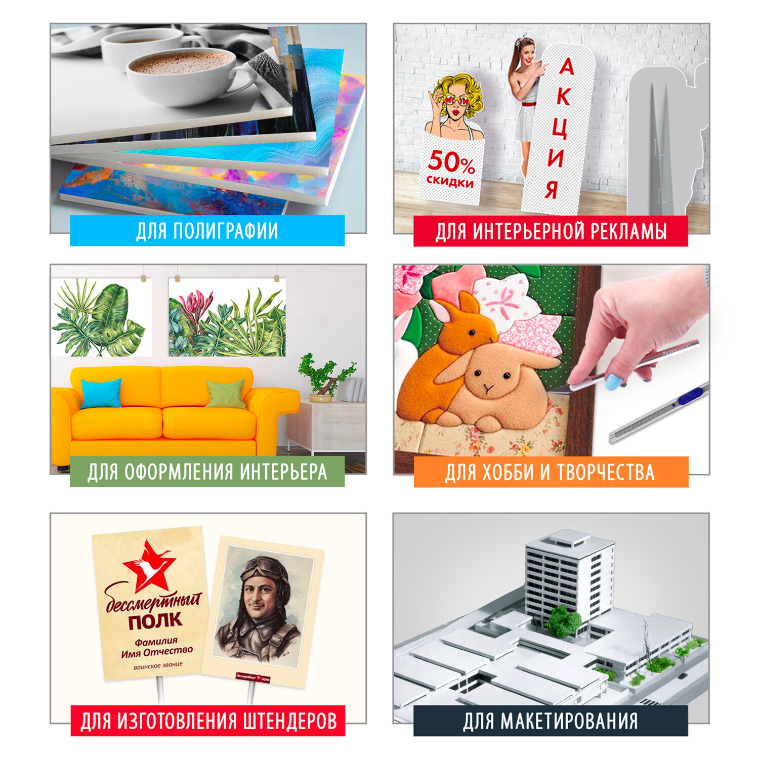 Может применяться только внутри помещений. Пенокартон матовый САМОКЛЕЯЩИЙСЯ, 70х100 см, толщина 5 мм, белый, BRAUBERG, 112481