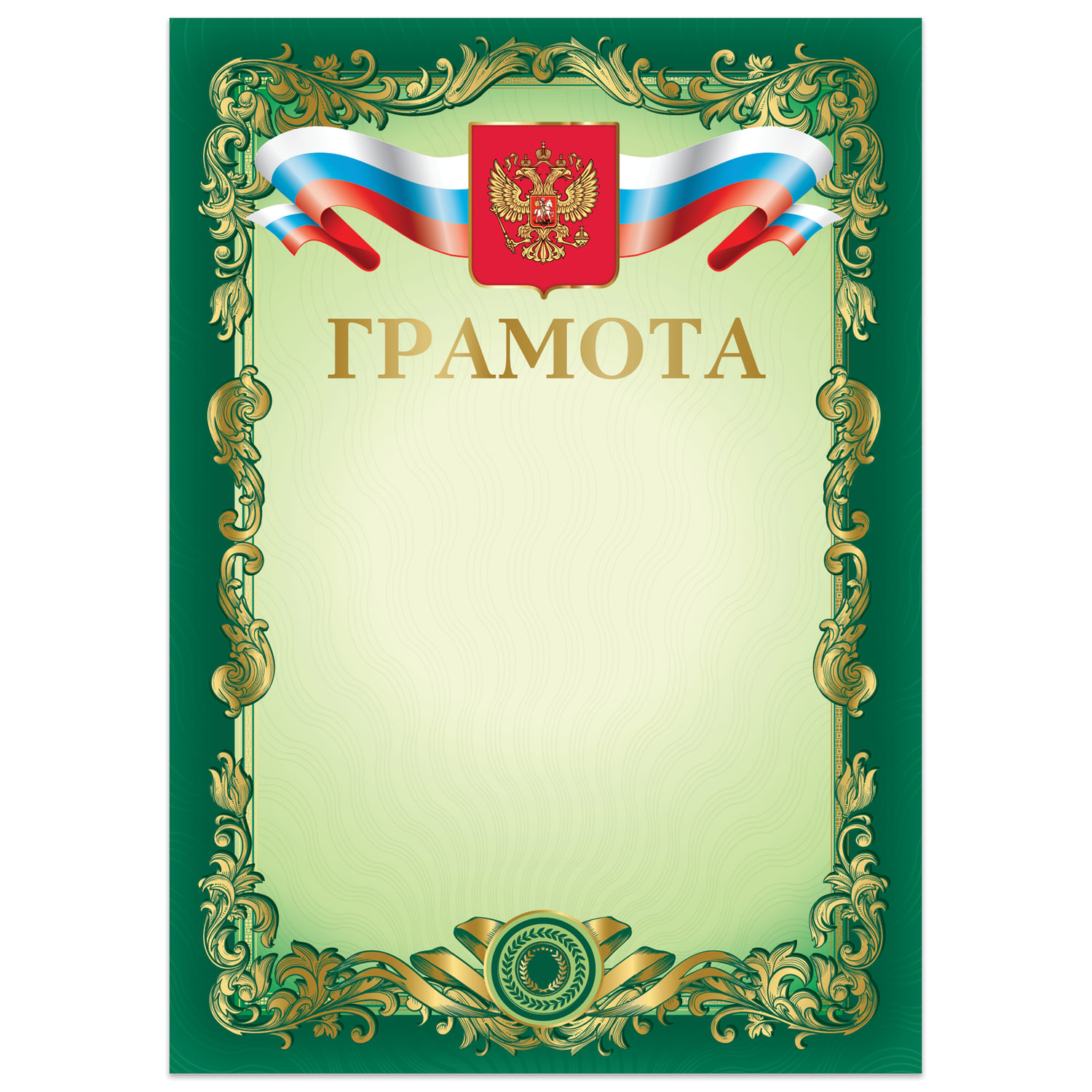 Изготовлен из импортного мелованного картона плотностью 200 г/м2. Составляется в свободной форме. Имеется изображение российской символики. Формат А4. Грамота А4, мелованный картон, зеленая, BRAUBERG, 126548