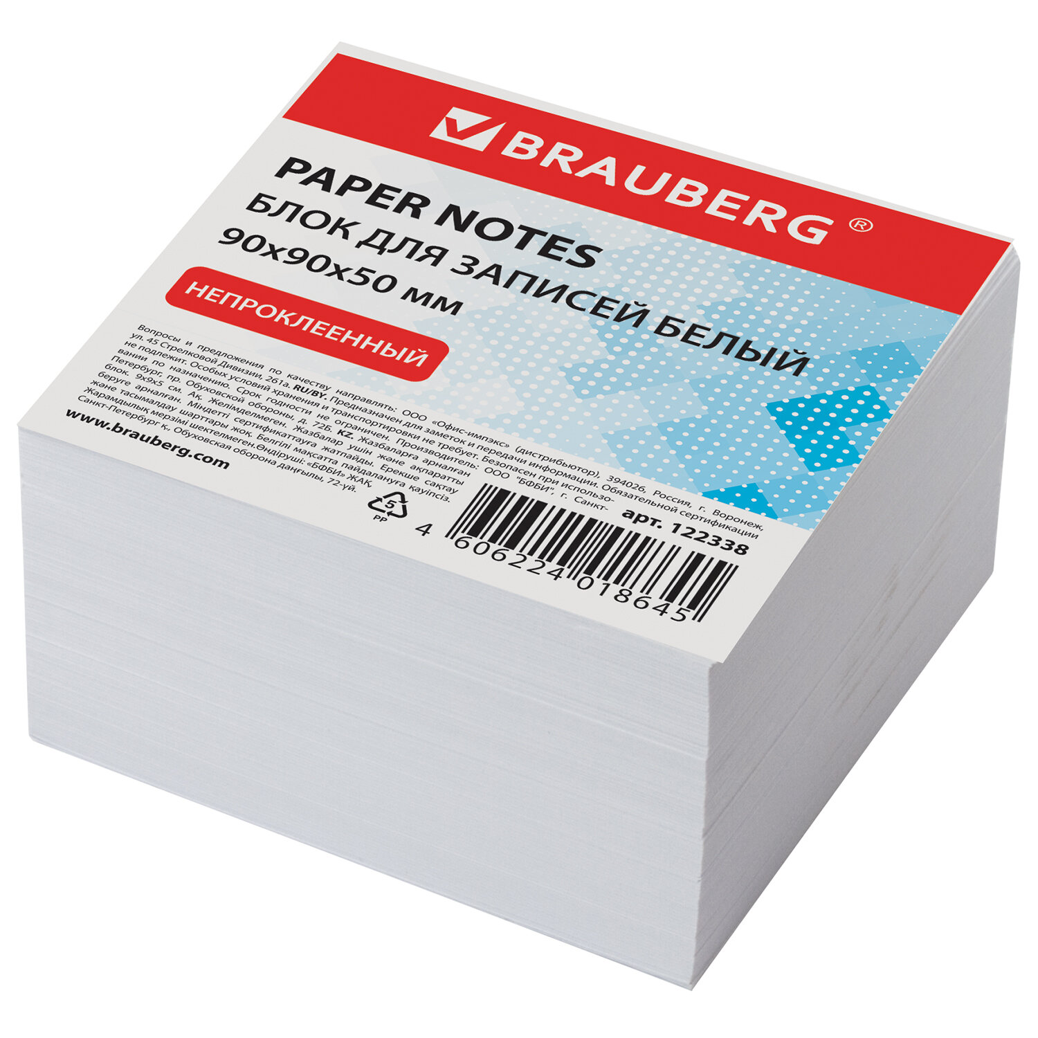 Блок для записей BRAUBERG, непроклеенный, куб 9х9х5 см, белый, белизна 95-98%, 122338