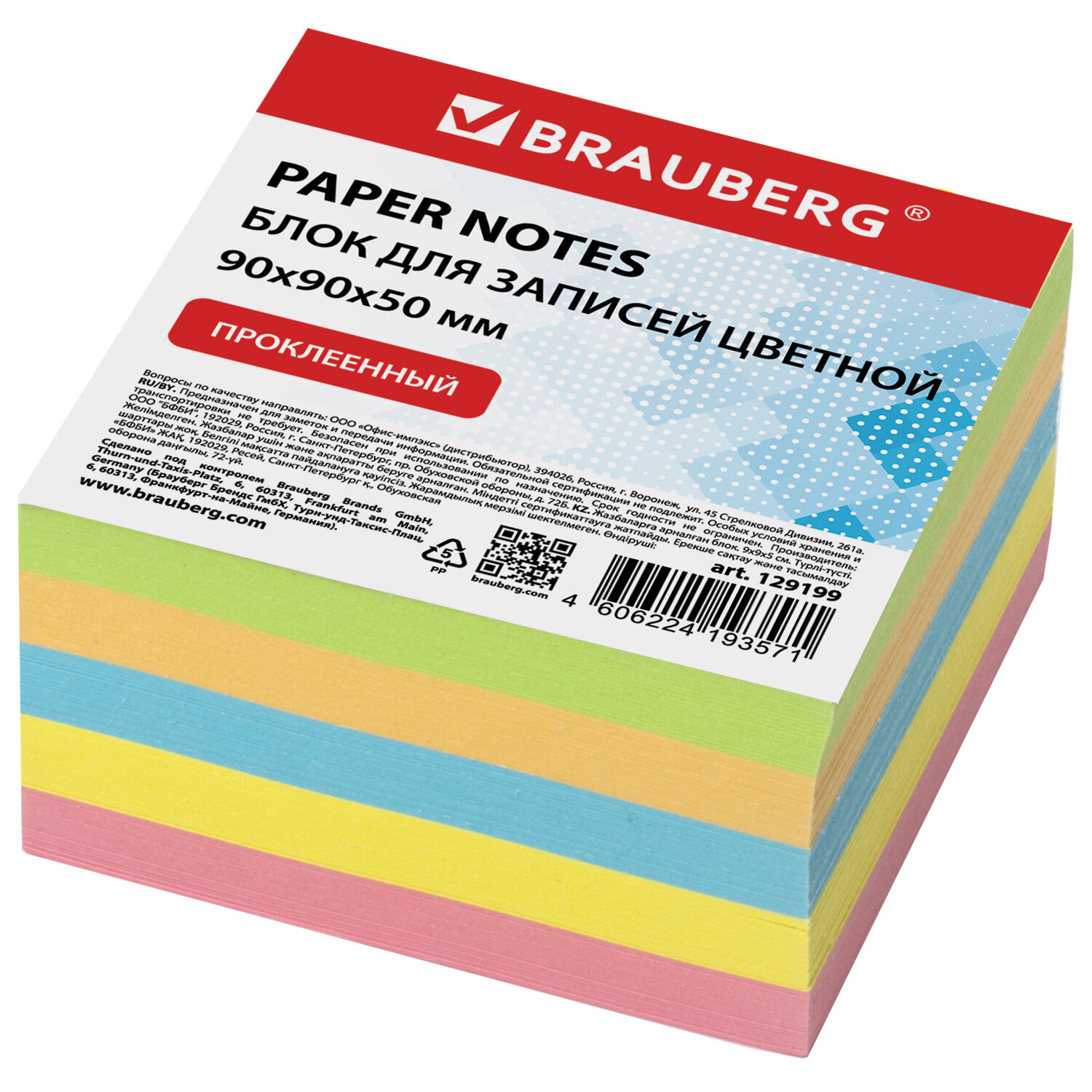 Блок для записей BRAUBERG проклеенный, 9х9х5 см, цветной, 129199