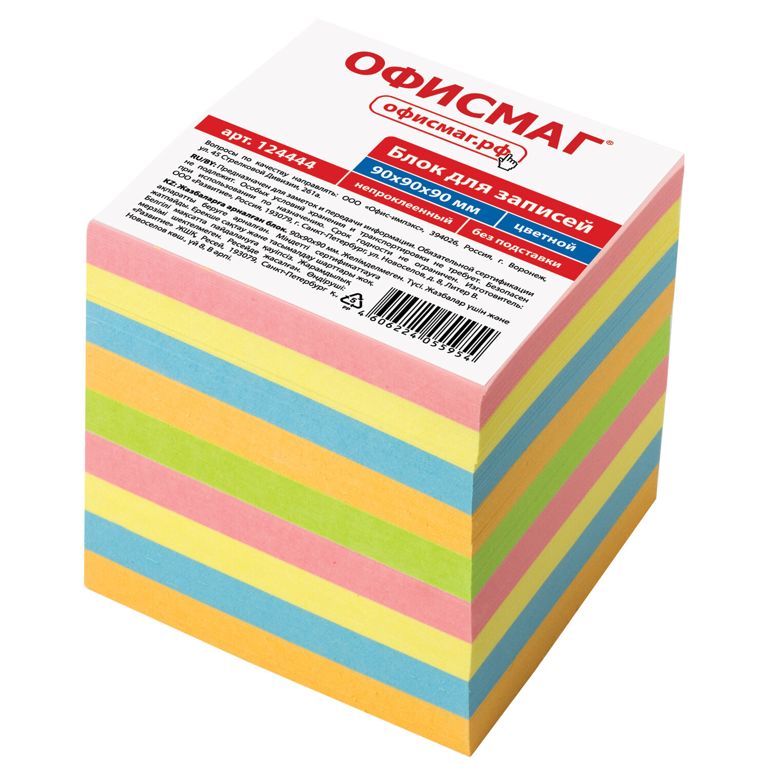 - Блок для записей ОФИСМАГ непроклеенный, куб 9х9х9 см, цветной, 124444