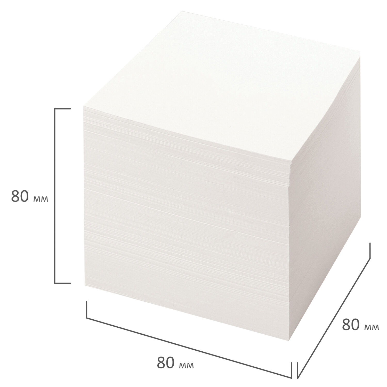 Блок высотой 8 см сложен из квадратных листов размером 8х8 см. Листы изготовлены из высококачественной офсетной бумаги плотностью 55 г/м2 и белизной 70-80%. Блок для записей подходит для письма любыми типами ручек и карандашей. Поставляется в плотной термоусадочной пленке, защищающей при транспортировке.