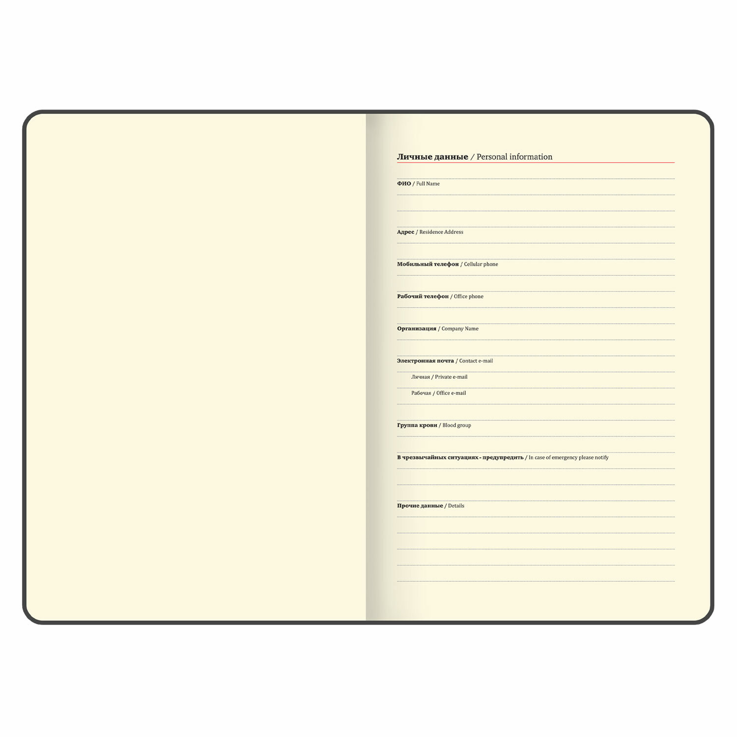 Внутренний блок включает 64 листа тонированной бумаги плотностью 70 г/м2. Благодаря стандартному формату А5 (145х215 мм) еженедельник удобно использовать как в офисе, так и на выездных деловых встречах. Твердая обложка благородного темно-коричневого цвета, стилизованная под кожу крокодила, подходит для горячего тиснения. Срез еженедельника фольгирован золотой фольгой, что придает ему особый шарм. Дополнением является закладка-ляссе, с помощью которой при необходимости можно быстро открыть еженедельник на нужной странице. Для заметок в еженедельнике имеется 7 страниц в конце внутреннего блока. Помимо прочего, еженедельник снабжен обширным справочным материалом.