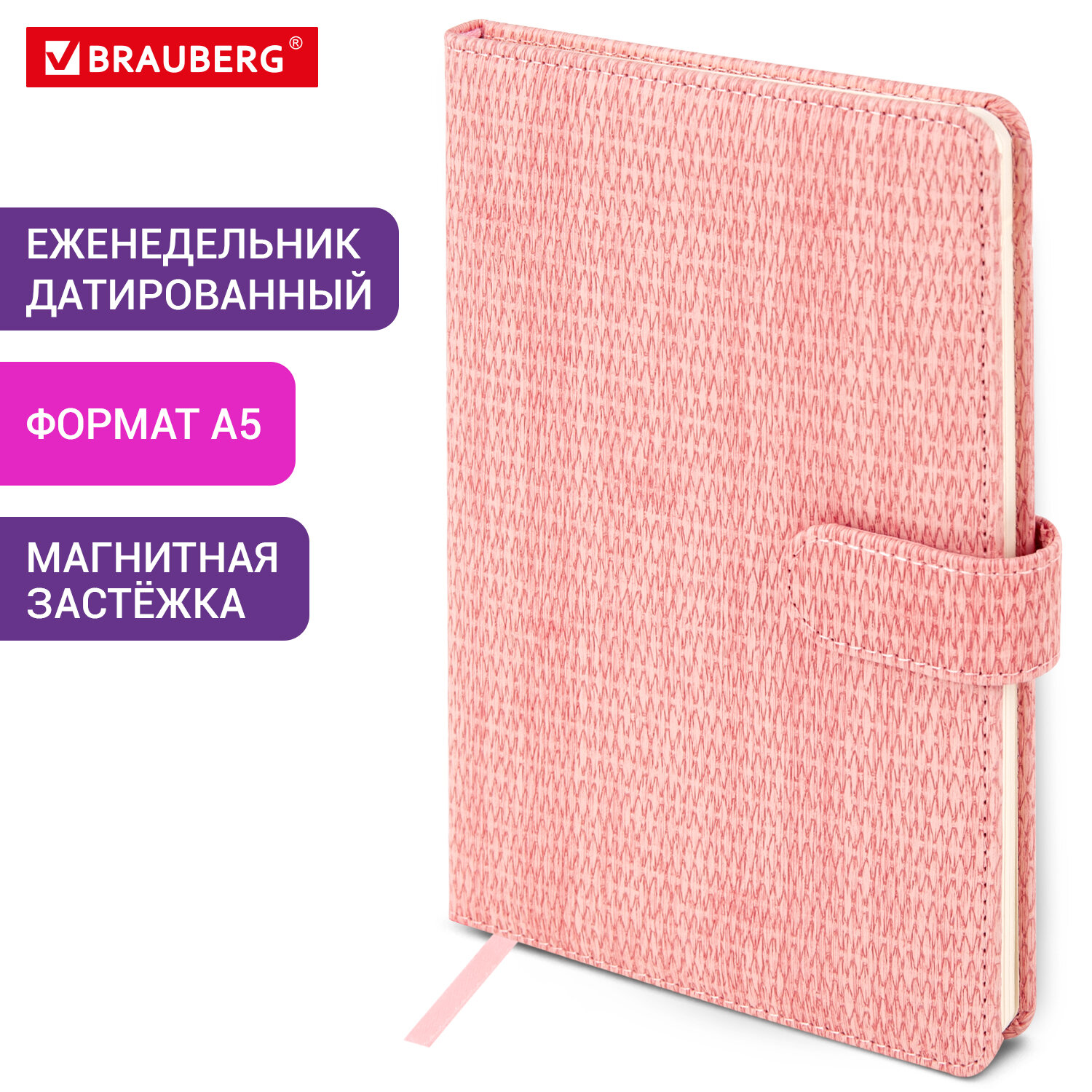 - Еженедельник датированный 2026 А5 145х215 мм, BRAUBERG "Augustus", под кожу, розовый, 117163