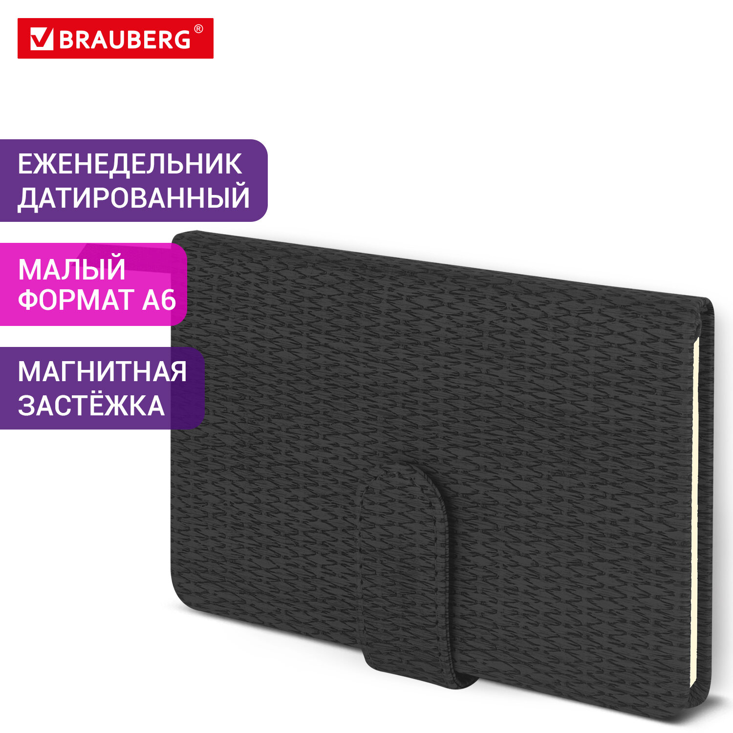 - Еженедельник датированный 2026 МАЛЫЙ ФОРМАТ 95х155 мм, А6, BRAUBERG "Augustus", под кожу, черный, 117186