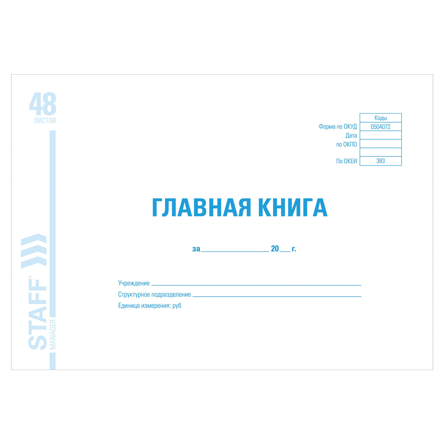 Главная книга, форма ОКУД 0504072, 48 л., картон, блок офсет, А4 292х200 мм, STAFF, 130075