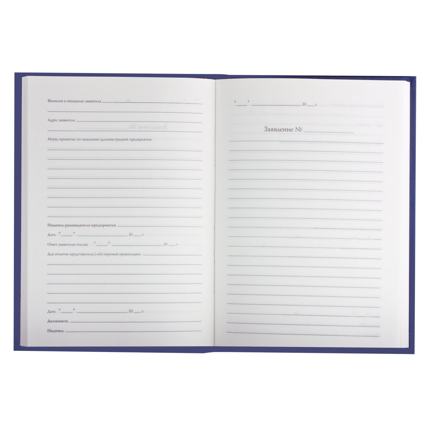 Книга имеет жесткую книжную обложку, покрытую бумвинилом. Название на обложке выполнено тиснением фольгой. Внутренний блок с разлиновкой и текстом, облегчающими ведение записей. Книга отзывов, жалоб и предложений, 96 л., бумвинил, фольга, А5 (140х200 мм), Альт, 7-96-945