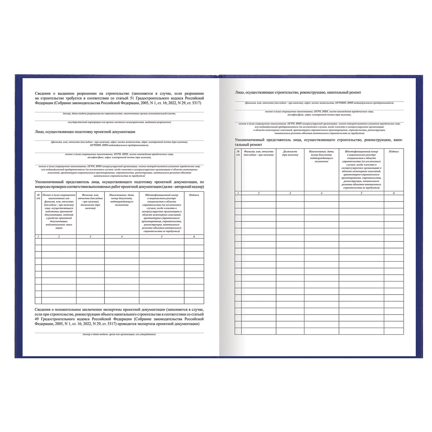 Имеет жесткую книжную обложку, покрытую синим бумвинилом плотностью 300 г/м2. Название на обложке выполнено тиснением фольгой. Вертикальная ориентация. Внутренний блок содержит 64 листа офсетной бумаги плотностью 60 г/м2 разлиновкой и текстом по утвержденной форме КС-6, облегчающими ведение записей. Формат - А4 (200х290 мм). Журнал Общий журнал работ, 64 л., бумвинил, блок офсет, А4 200х290 мм, BRAUBERG, 130144