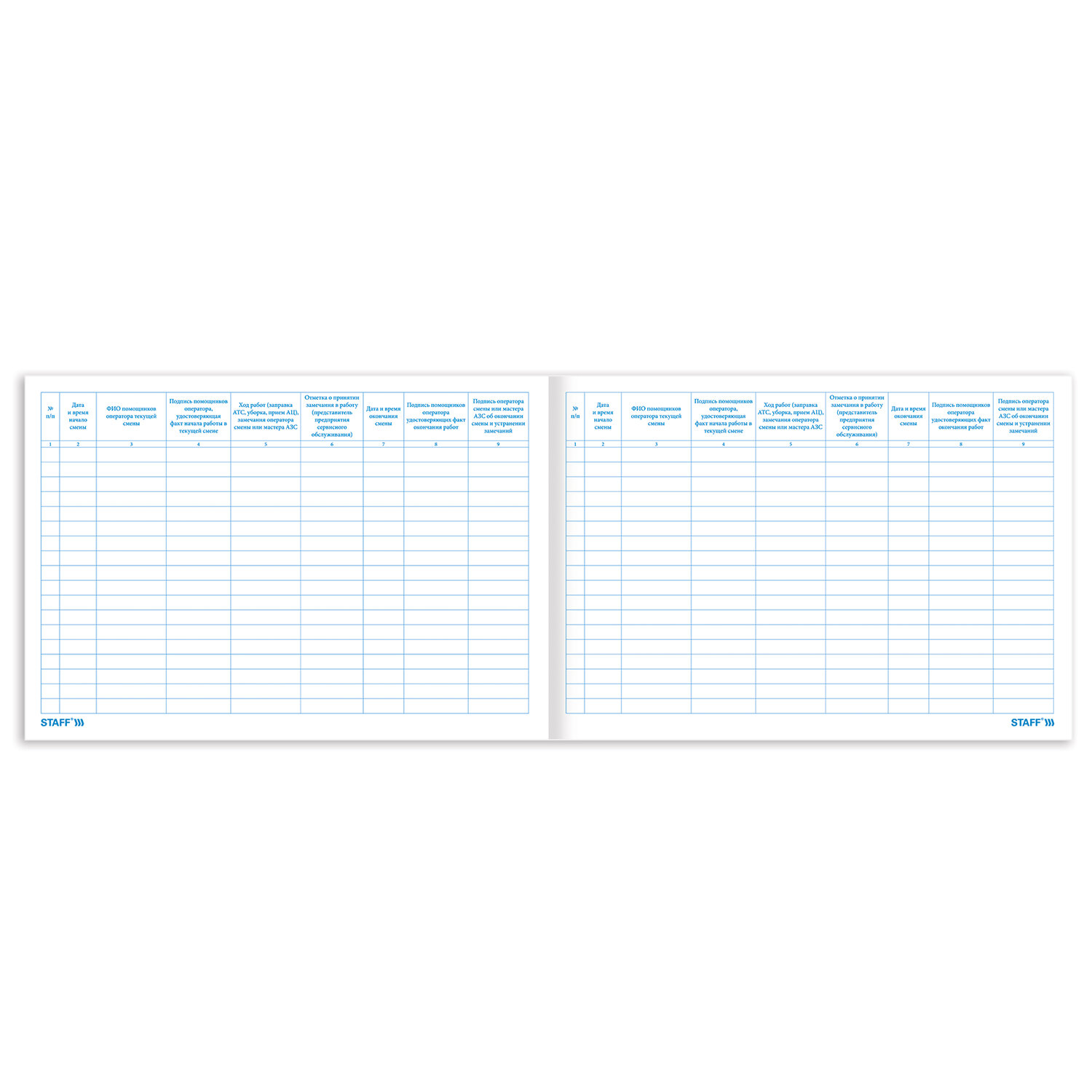 - Журнал приема и сдачи смен на АЗС, 48 л., картон, блок офсет, А4 292х200 мм, STAFF, 130265