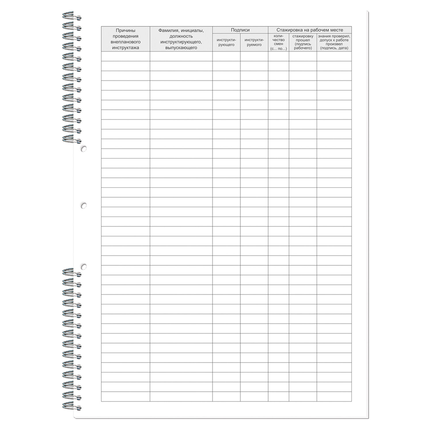 - Журнал регистрации инструктажа по технике безопасности, 50 л., картон, на гребне, А4 (204х290 мм), 19с11-50