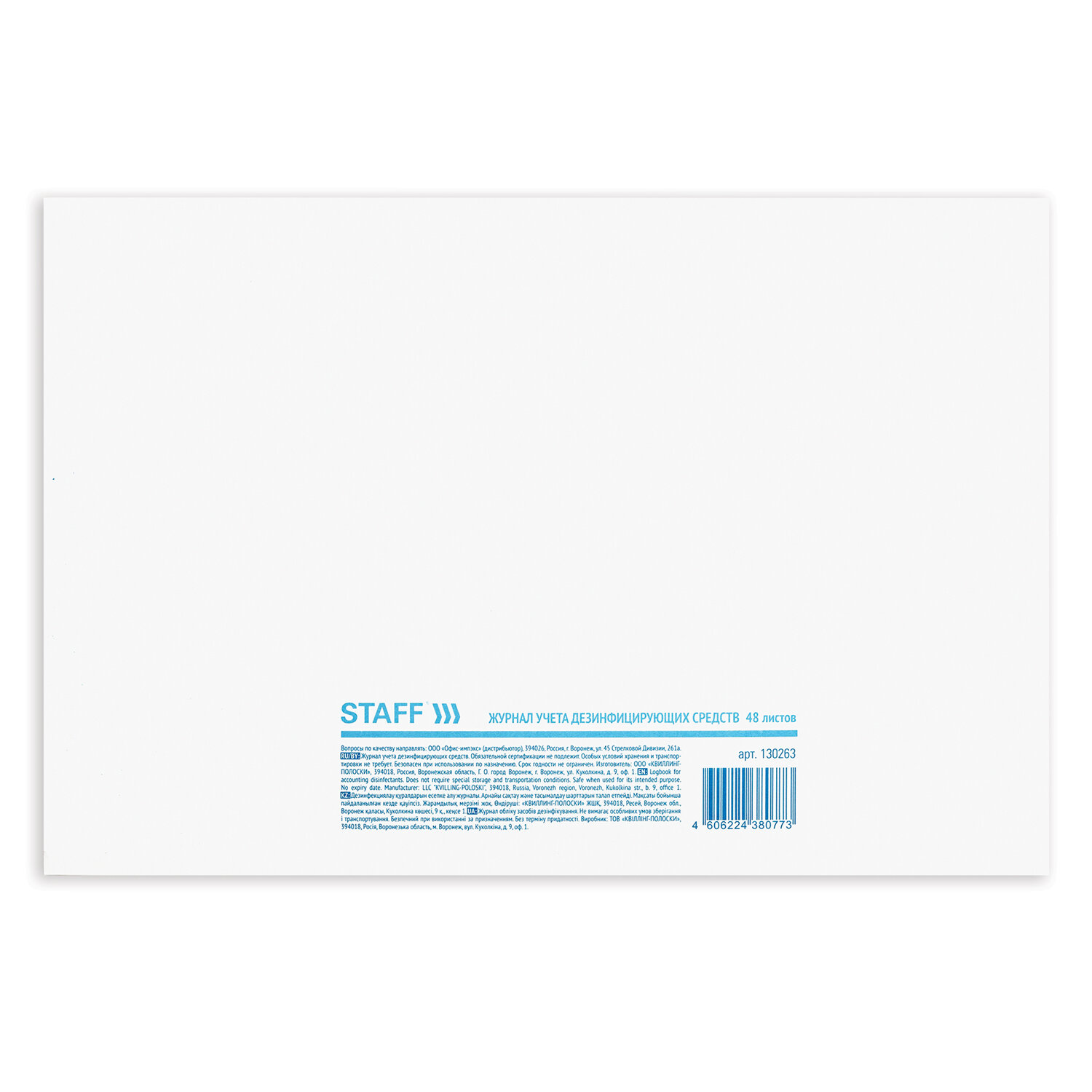 - Журнал учета дезинфицирующих средств, 48 л., картон, блок офсет, А4 292х200 мм, STAFF, 130263