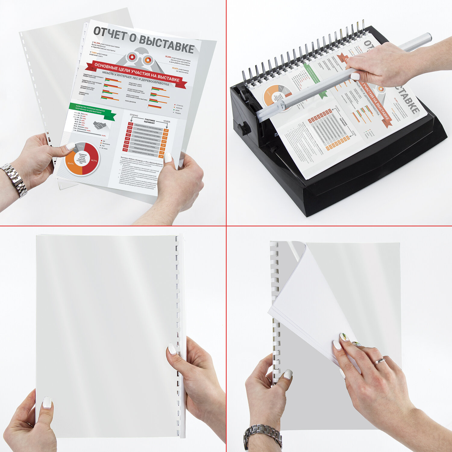 - Обложки картонные для переплета, А4, КОМПЛЕКТ 100 шт., глянцевые, 250 г/м2, белые, BRAUBERG, 530840
