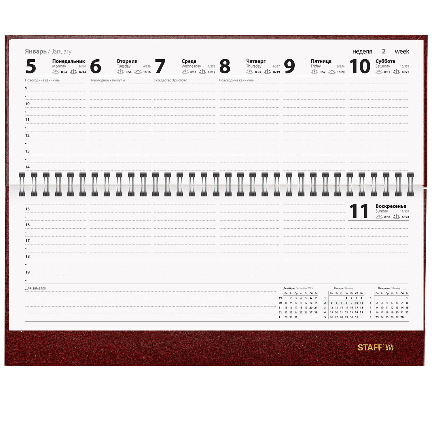 - Планинг датированный 2026 300х130 мм, STAFF, гребень, обложка бумвинил, 64 л., бордовый, 117359