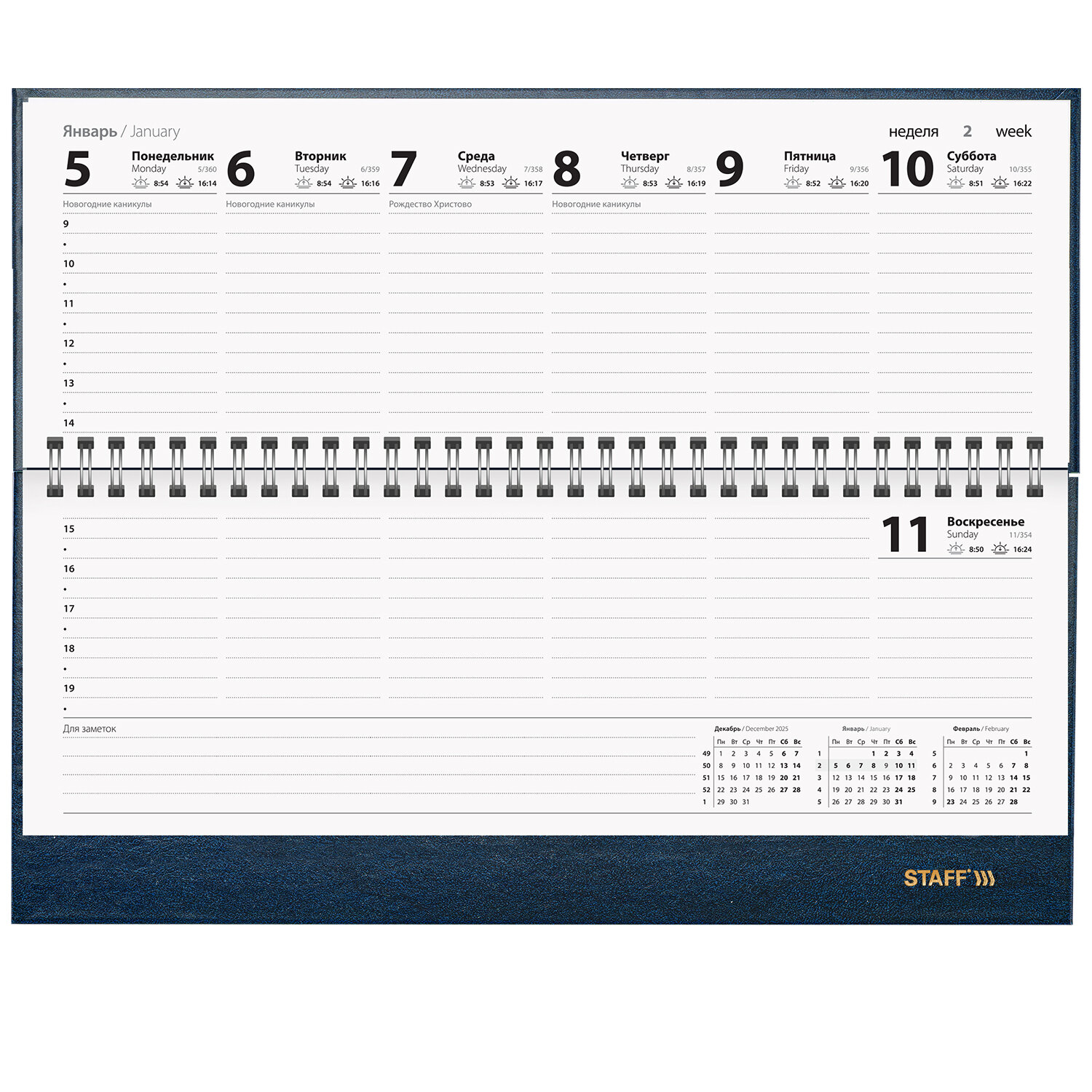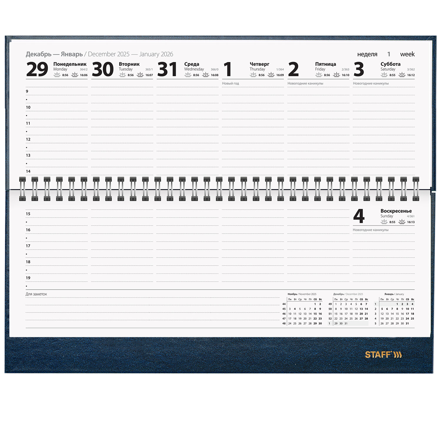 - Планинг датированный 2026 300х130 мм, STAFF, гребень, обложка бумвинил, 64 л., синий, 117358