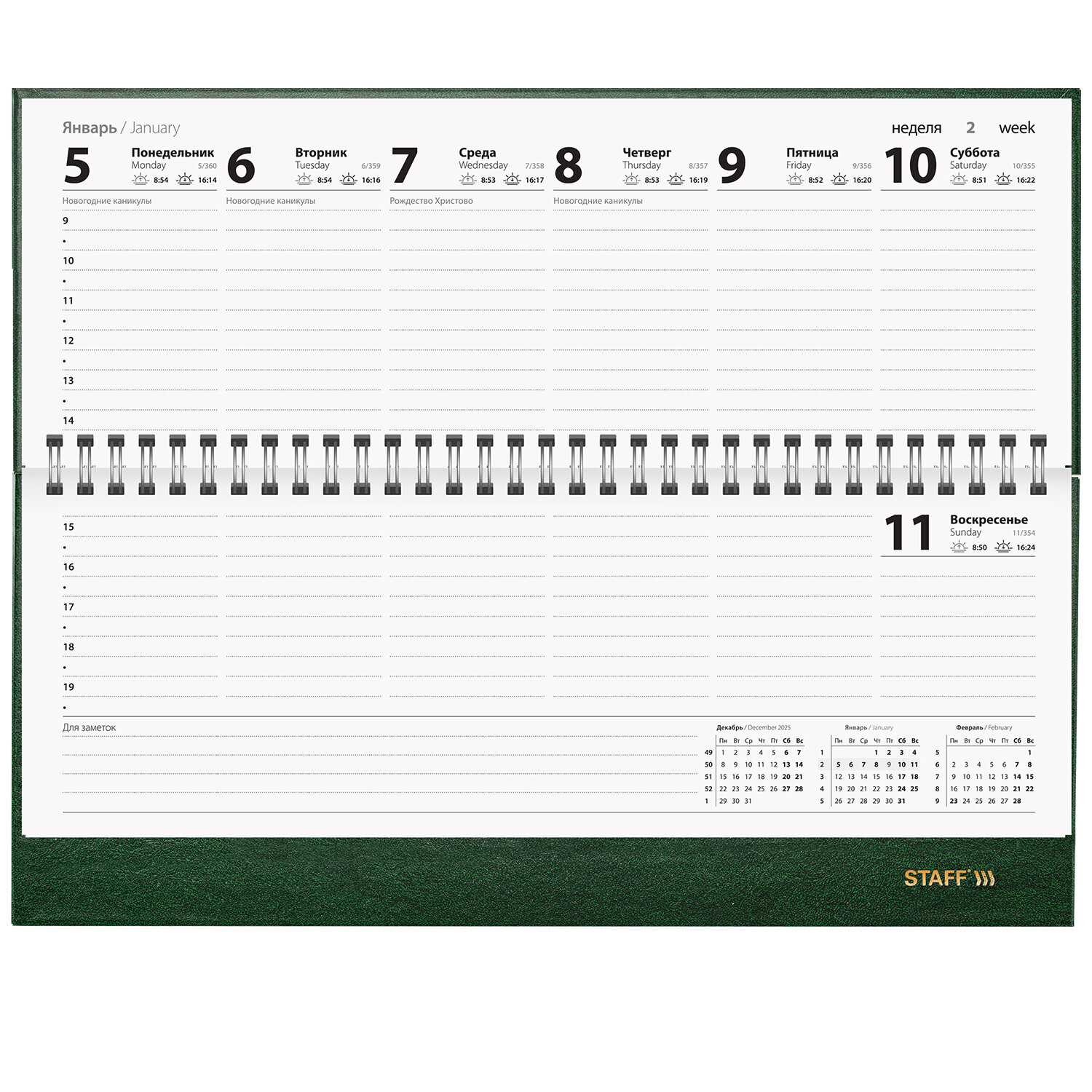 - Планинг датированный 2026 300х130 мм, STAFF, гребень, обложка бумвинил, 64 л., зеленый, 117361