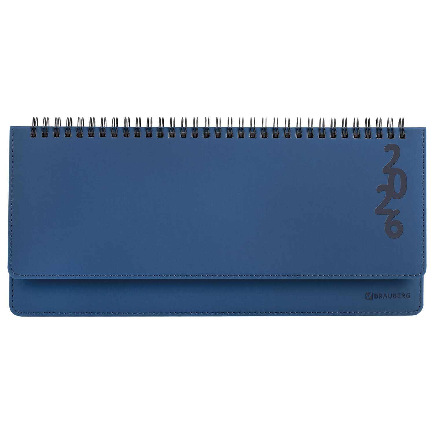 - Планинг датированный 2026 305х140 мм BRAUBERG "Up", под кожу, синий, 117235