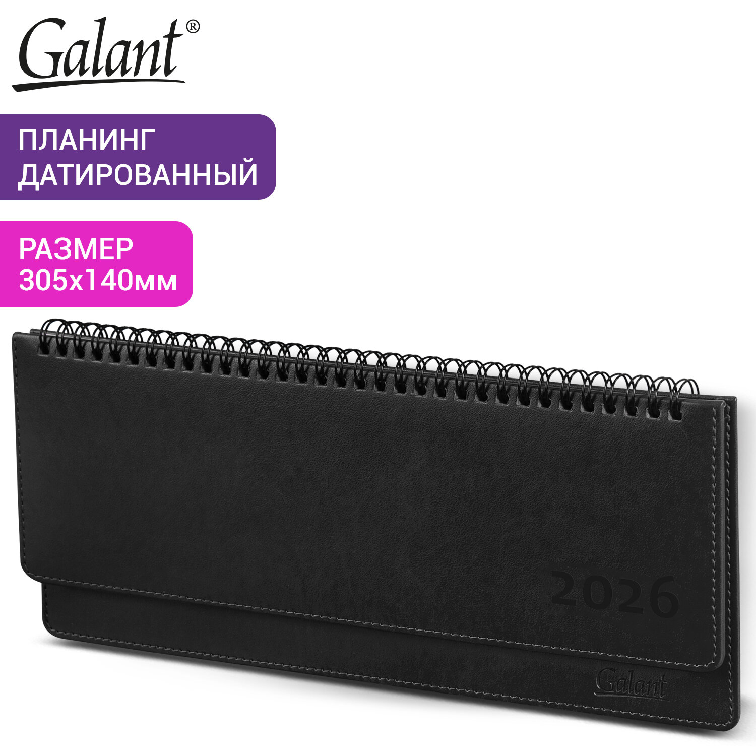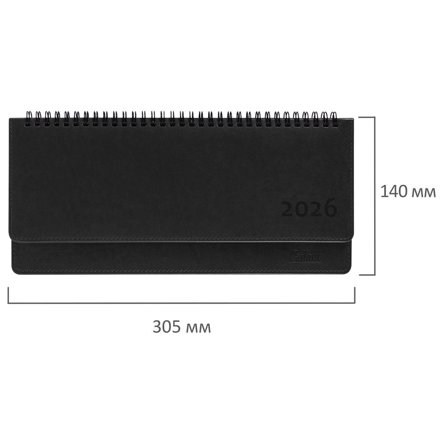 - Планинг датированный 2026 305х140 мм GALANT "Ritter", под кожу, черный, 117238