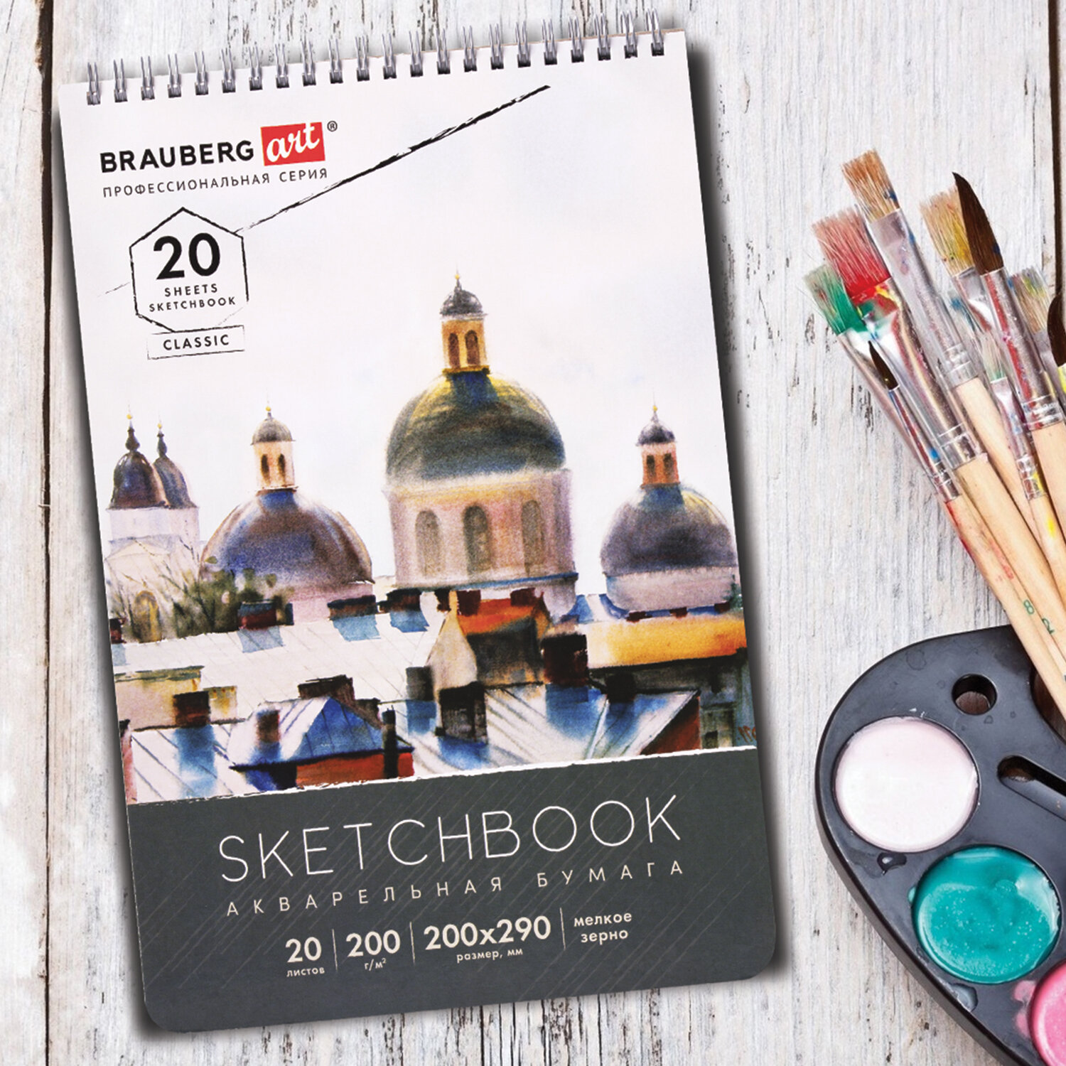 - Скетчбук, акварельная бумага 200 г/м2, 200х290 мм, 20 л., гребень, твердая обложка, BRAUBERG ART, 112980