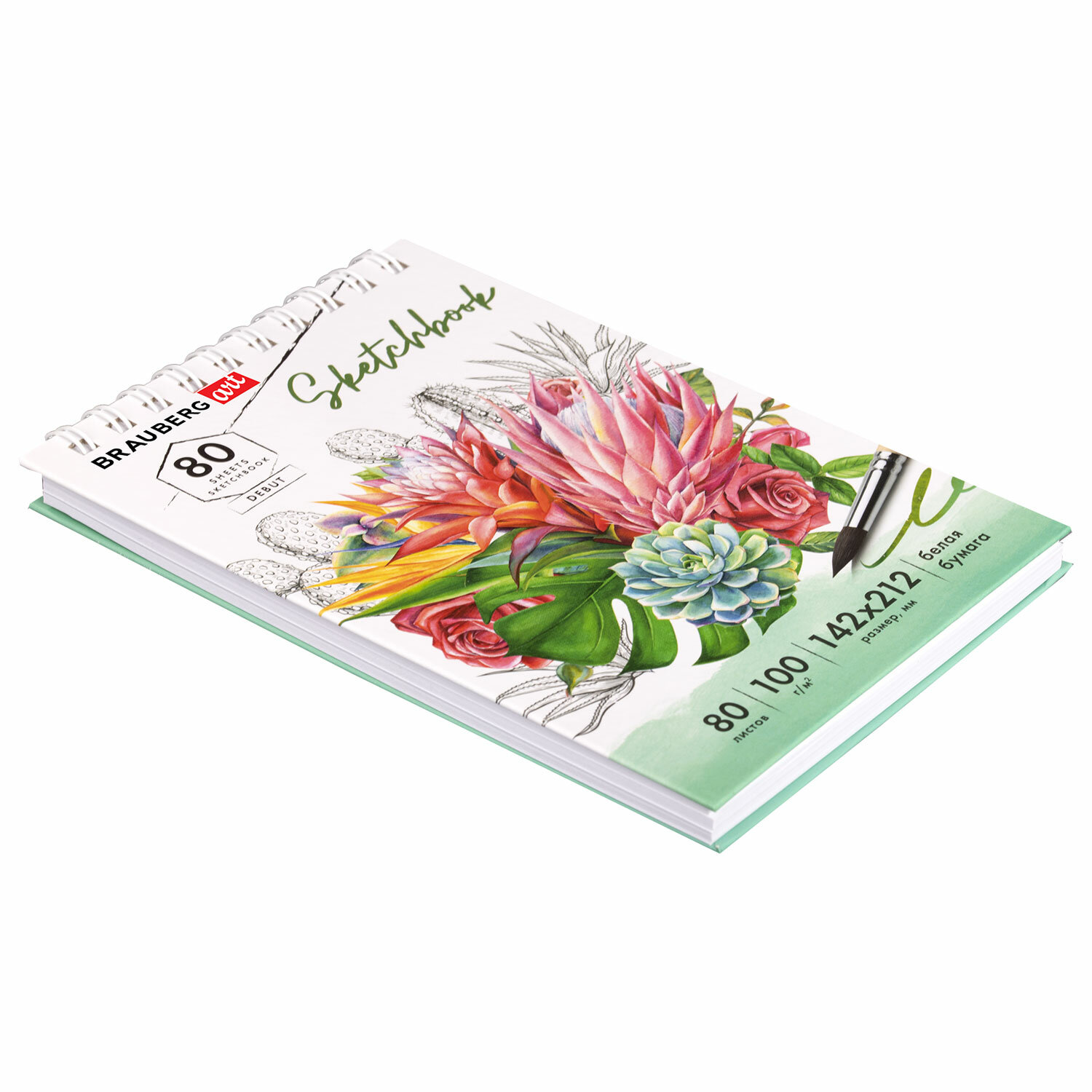 - Скетчбук белая бумага 100 г/м2 142х212 мм, 80 л., гребень, твердая обложка, BRAUBERG ART DEBUT, 112984