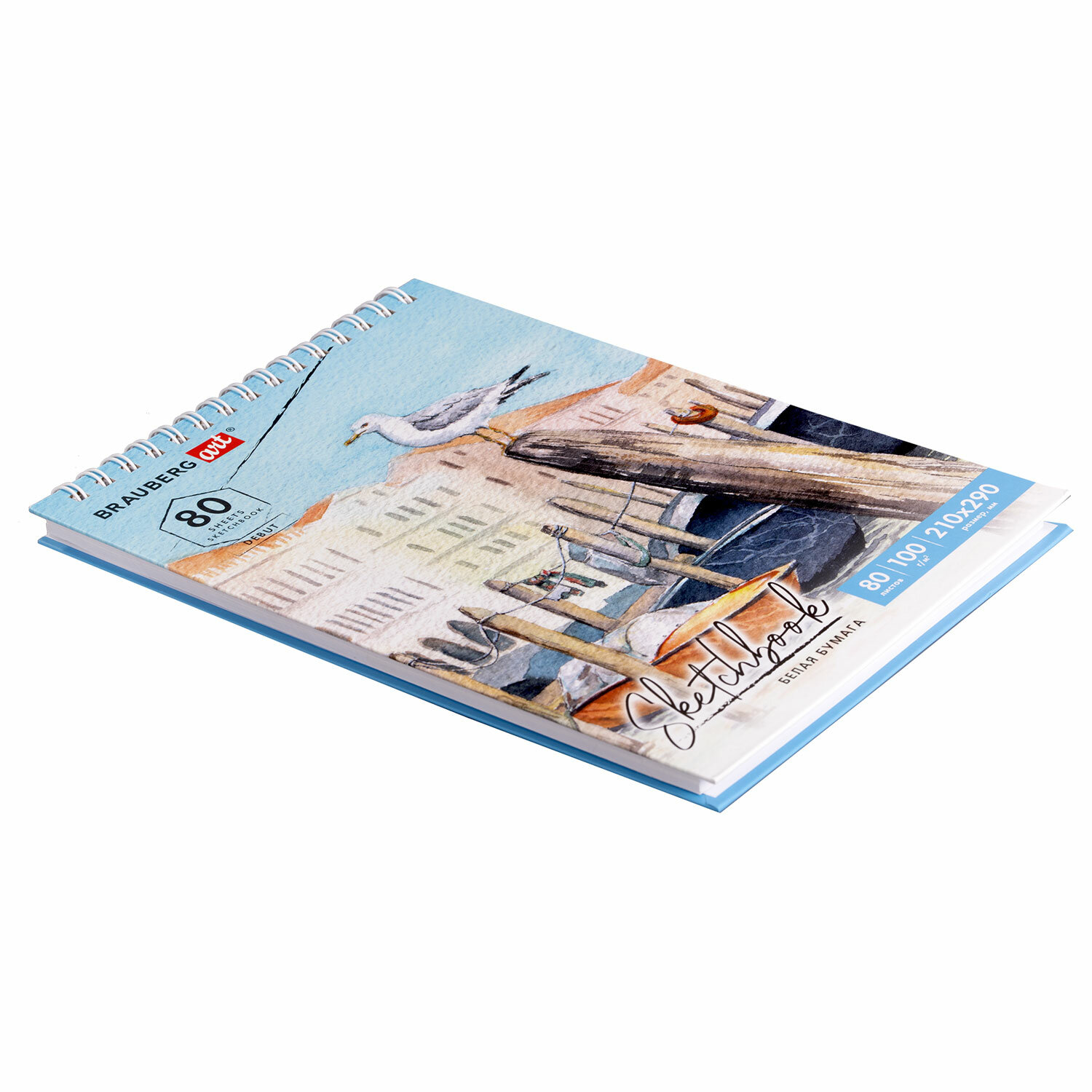 - Скетчбук, белая бумага 100 г/м2, 210х290 мм, 80 л., гребень, твердая обложка, BRAUBERG ART DEBUT, 112987