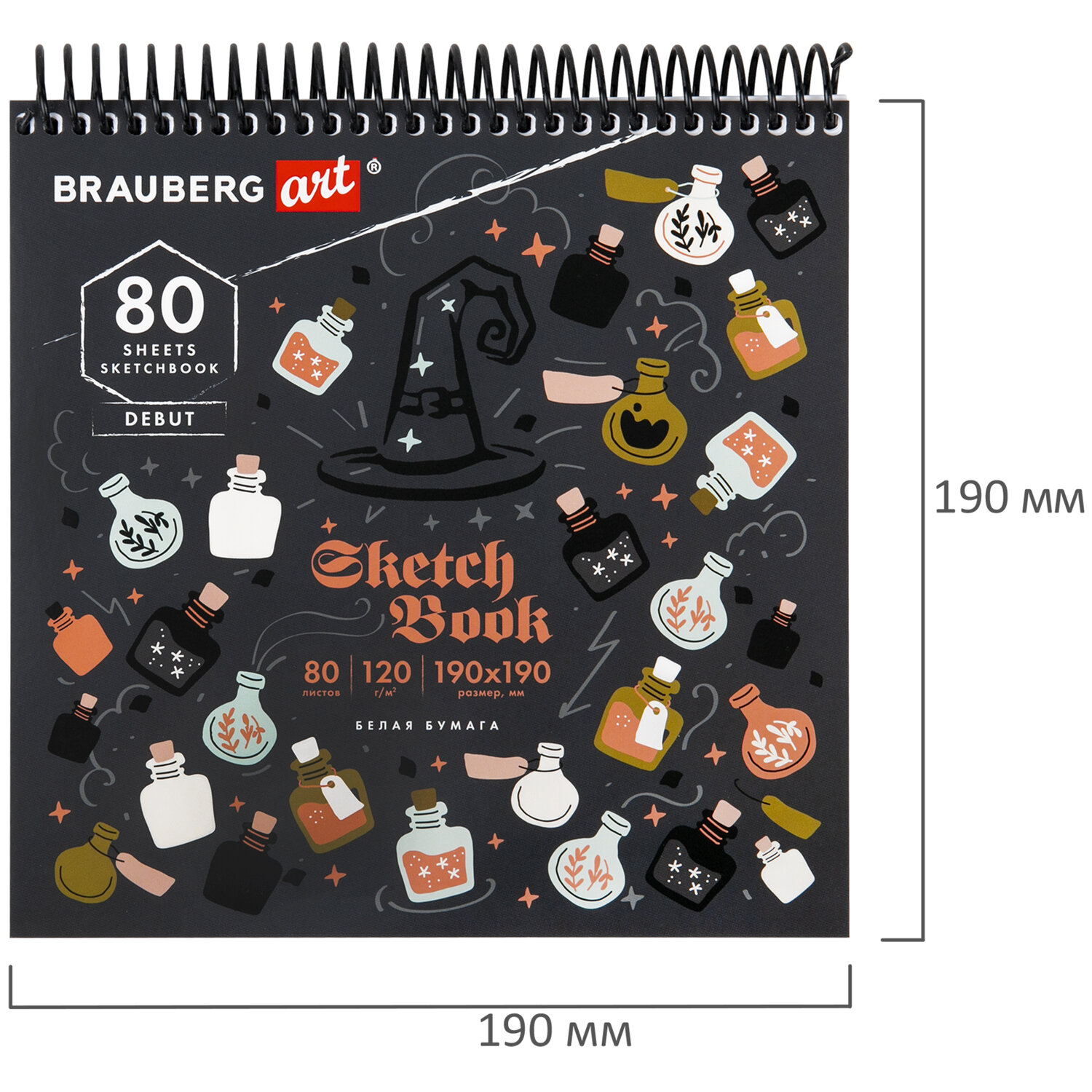 - Скетчбук, белая бумага 120 г/м2, 190х190 мм, 80 л., гребень, жёсткая подложка, BRAUBERG ART DEBUT, "Magic", 115067