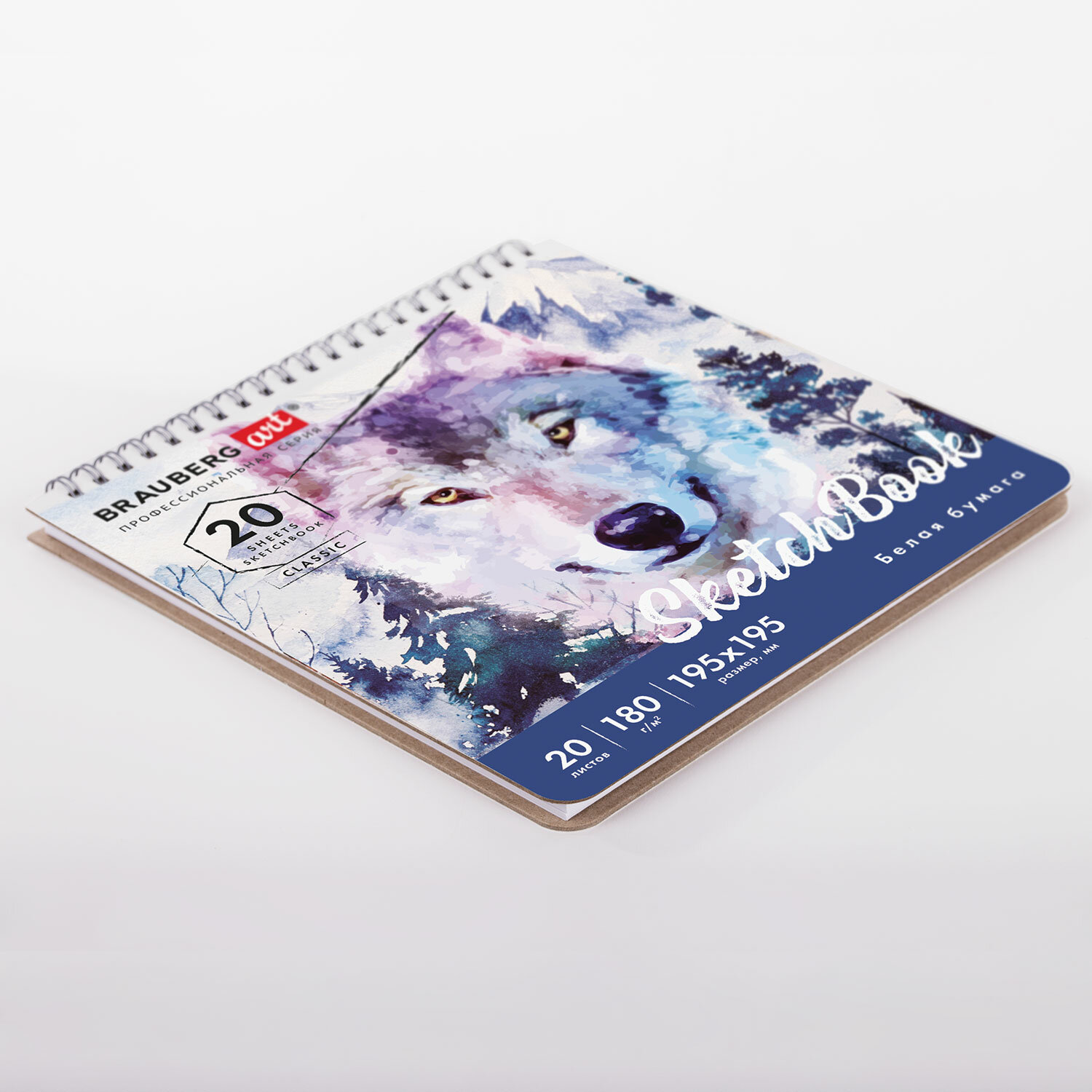 - Скетчбук, белая бумага 180 г/м2, 195х195 мм, 20 л., гребень, твердая обложка, BRAUBERG ART CLASSIC, 112994