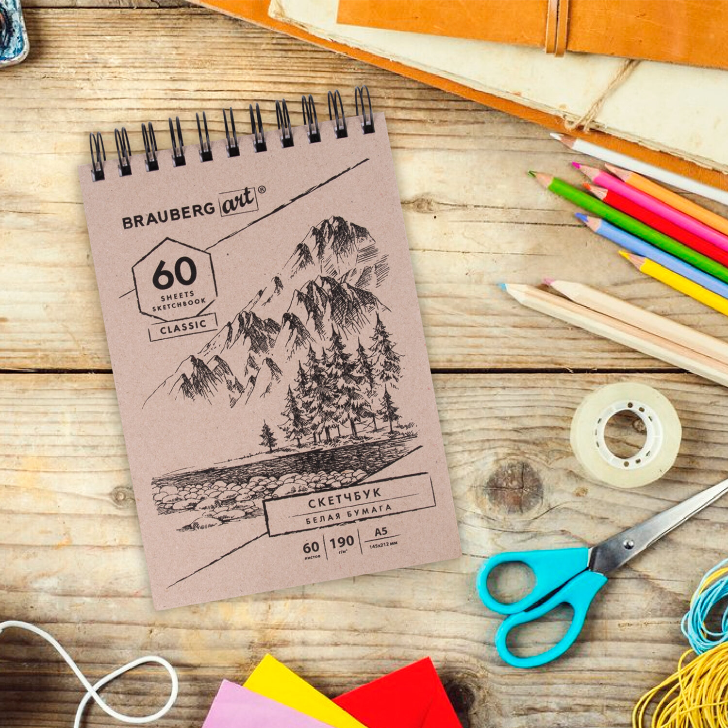 - Скетчбук, белая бумага 190 г/м2, 145х212 мм, 60 л., гребень, твердая обложка, BRAUBERG ART CLASSIC, 113851