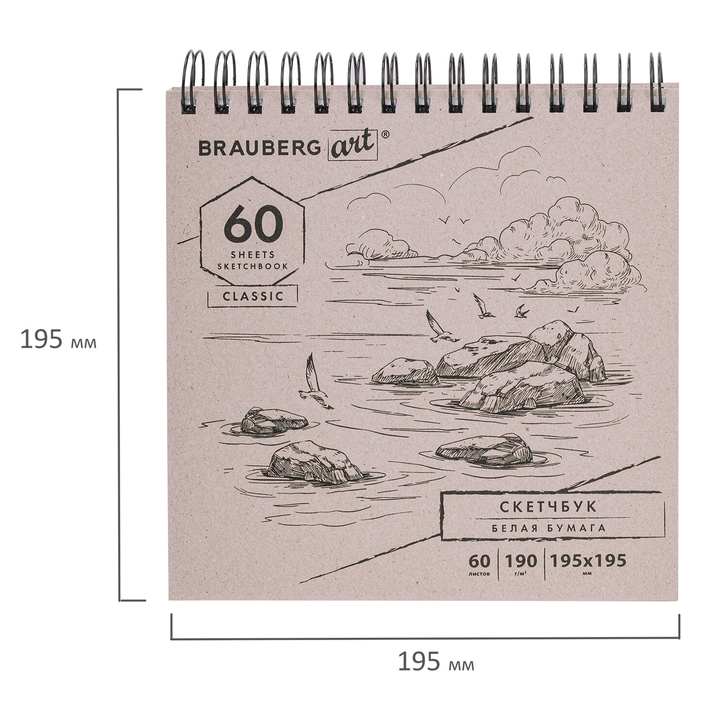 - Скетчбук, белая бумага 190 г/м2, 195х195 мм, 60 л., гребень, твердая обложка, BRAUBERG ART CLASSIC, 113852
