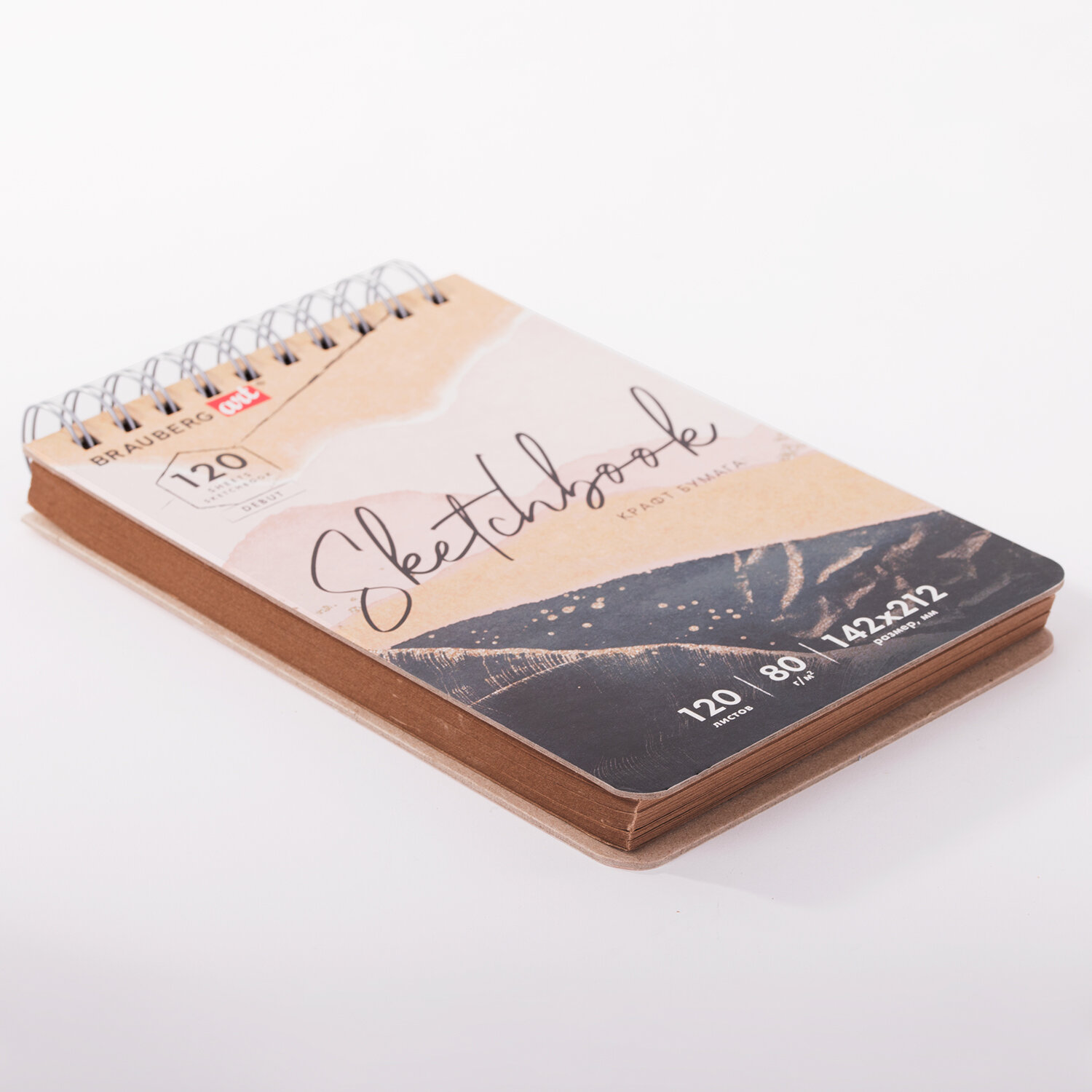 - Скетчбук, крафт-бумага 80 г/м2, 142х212 мм, 120 л., гребень, твердая обложка, BRAUBERG ART DEBUT, 112998