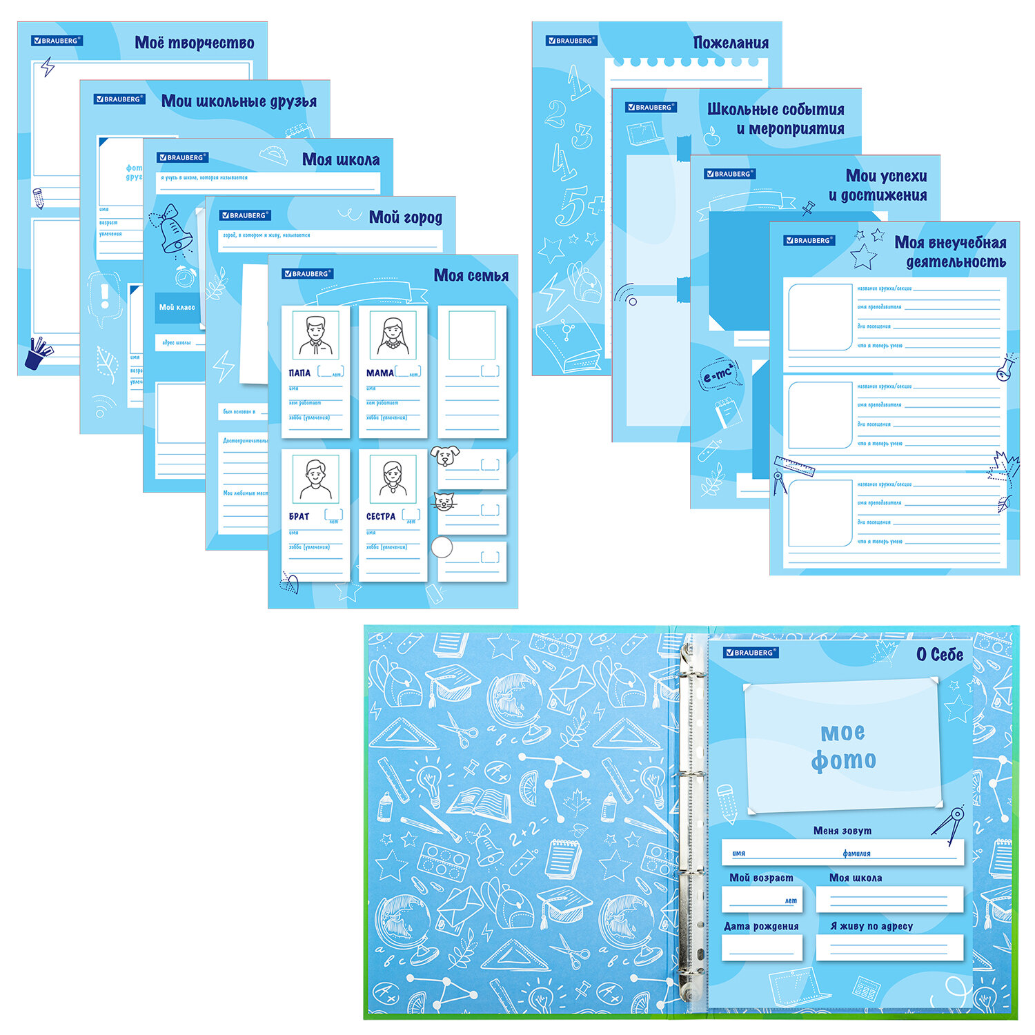 - Папка-портфолио школьника "ОТЛИЧНИК", 4 кольца, 20 файлов, 10 вкладышей, 7БЦ матовая, BRAUBERG, 115240