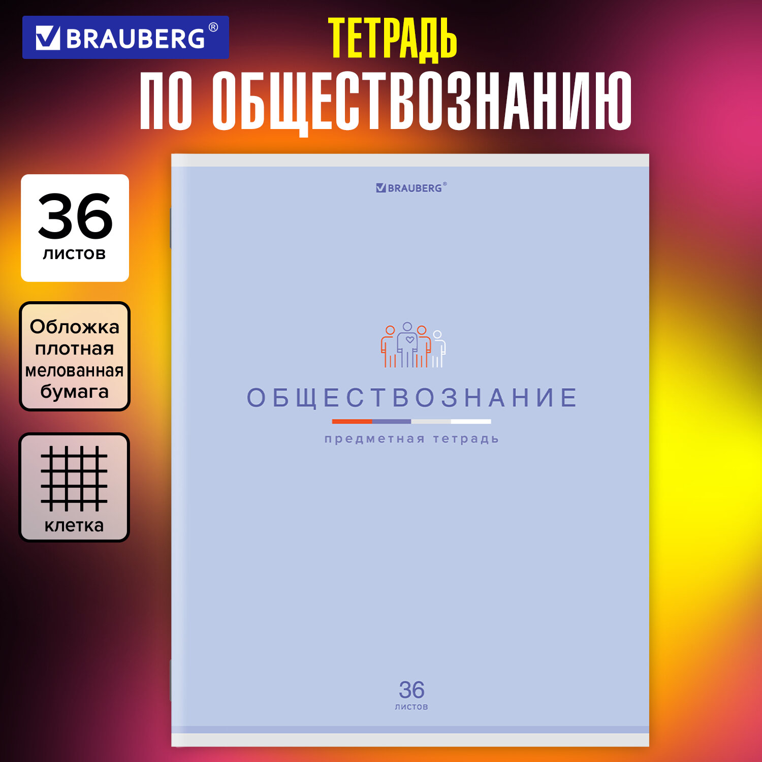 - Тетрадь предметная "МИР ЗНАНИЙ", 36 л., обложка мелованная бумага, ОБЩЕСТВОЗНАНИЕ, клетка, BRAUBERG, 404594