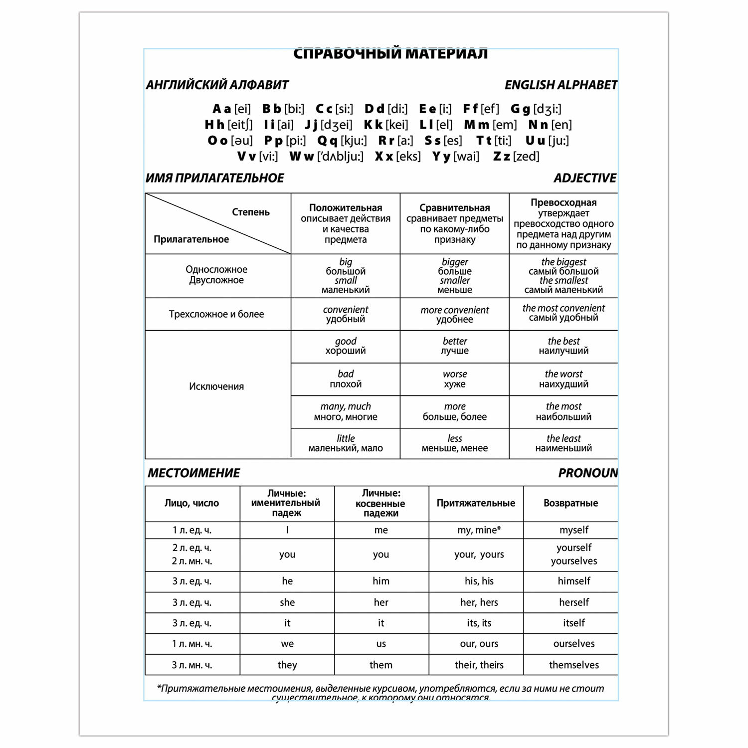 Тетрадь содержит 48 листов формата А5 (165х205 мм). Изготовлена из высококачественной офсетной бумаги плотностью 60 г/м2 и белизной 100%. Листы соединены скобами. Специальная линовка блока. Обложка выполнена из мелованного картона плотностью 190 г/м2. В справочном материале собраны базовые данные по английскому языку - алфавит, времена, глаголы и пр. Тетрадь-словарь для записи английских слов А5 48 л., скоба, клетка, BRAUBERG, справка, 403562