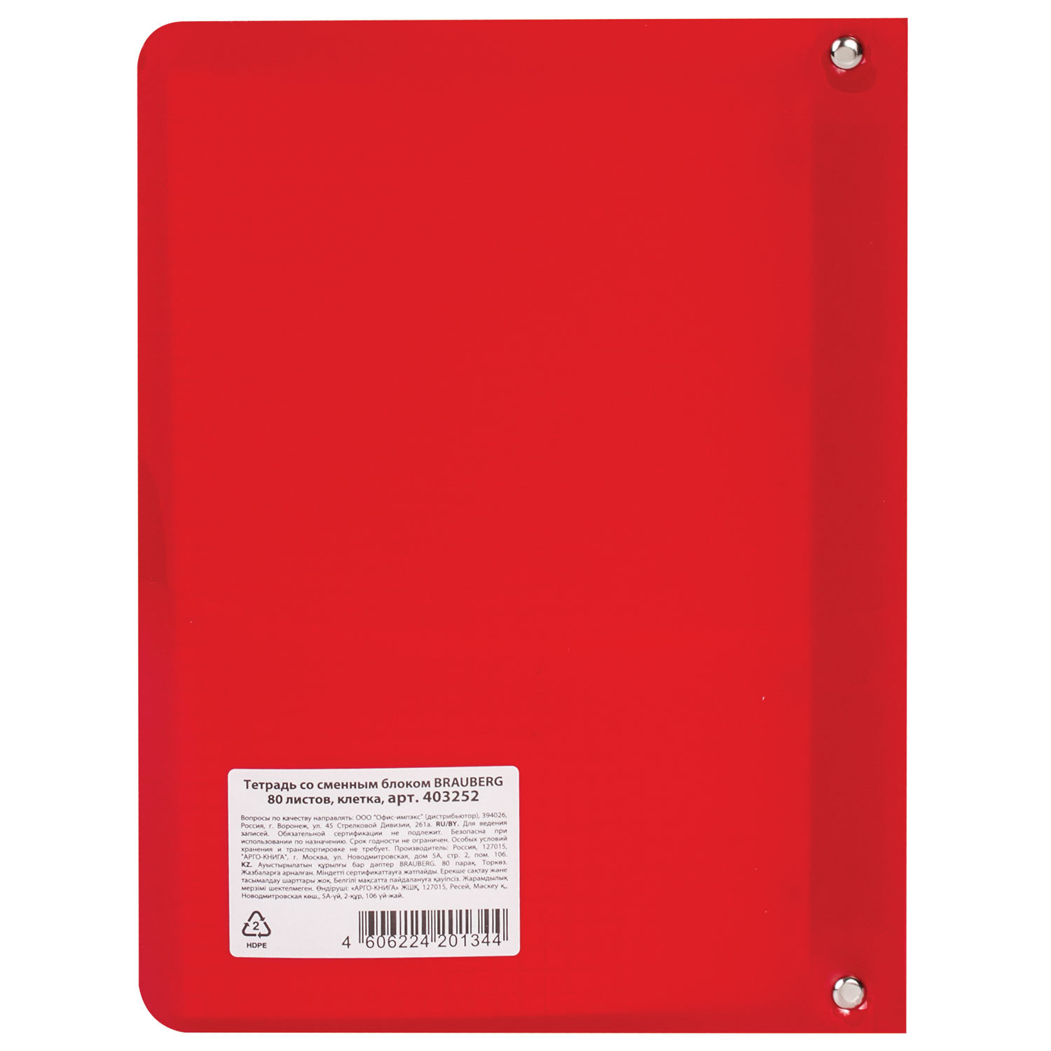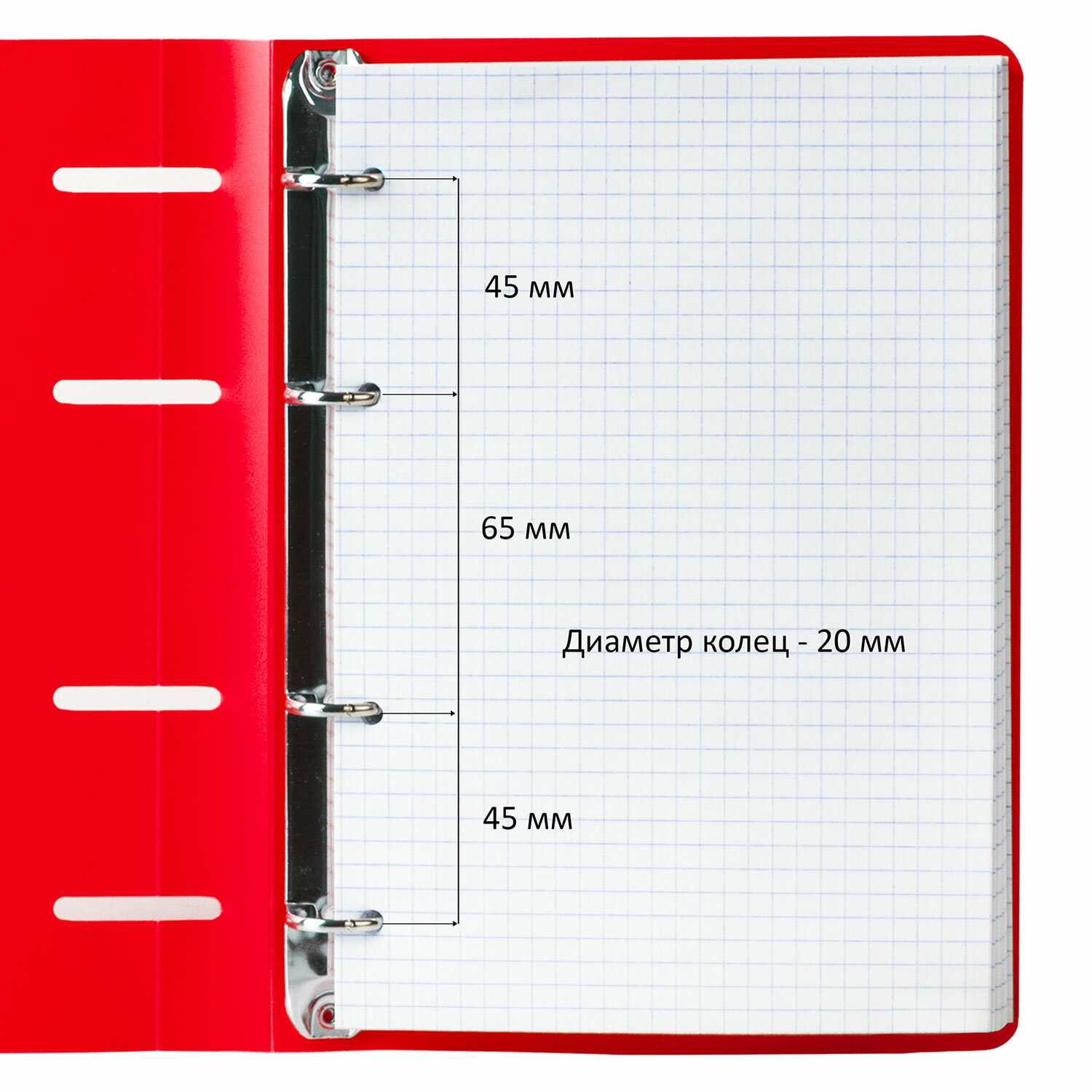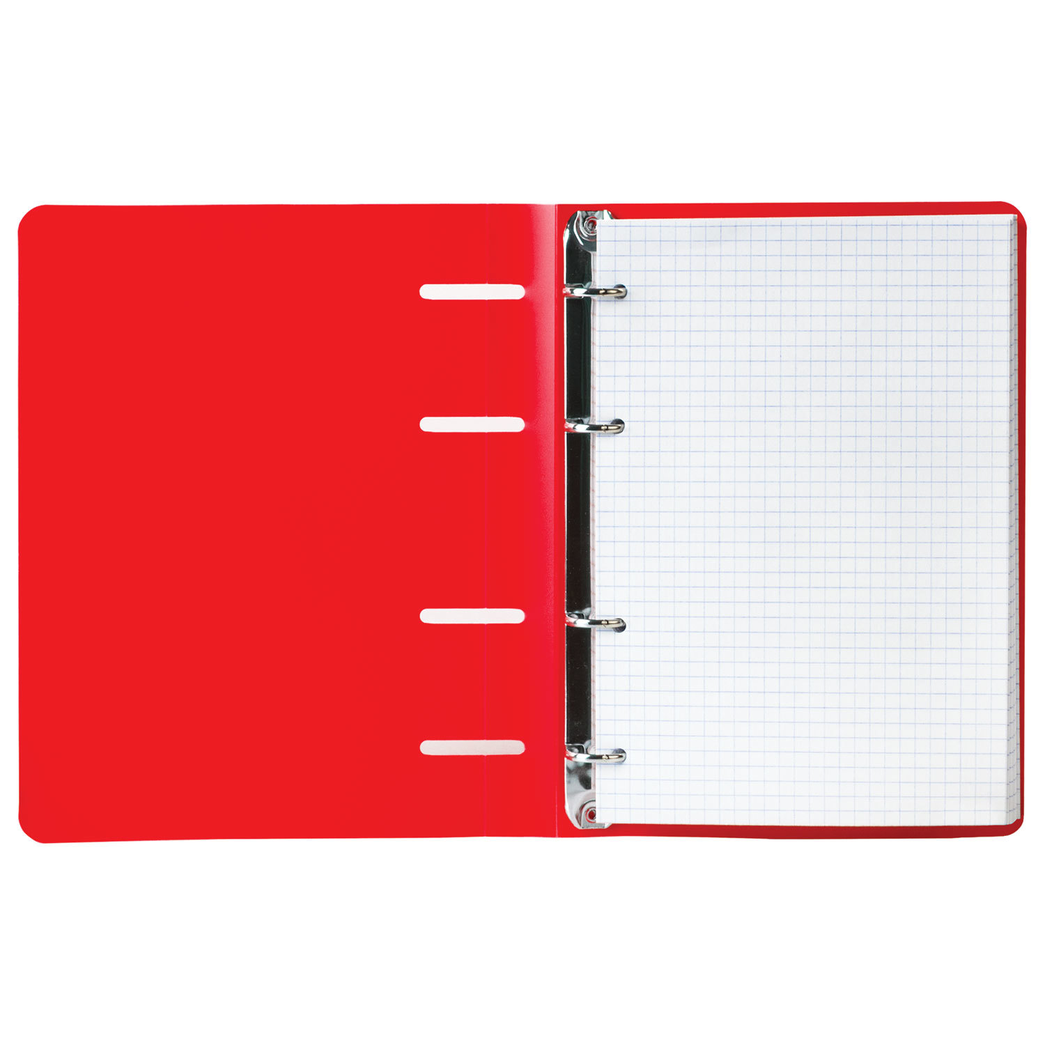 Блок состоит из 80 листов офсетной бумаги белого цвета плотностью 60 г/м2. Линовка - клетка. Обложка с вырубкой под кольца выполнена из износоустойчивого пластика. Формат А5 является стандартным и обеспечивает комфортное ношение в рюкзаке/ранце или папке. Оборудована кольцевым механизмом с 4-мя кольцами для подшивки сменных блоков, что позволит носить на учебу/работу всего одну тетрадь с возможностью добавлять и менять листы. Тетрадь на кольцах А5 160х215 мм, 80 л., пластик, клетка, BRAUBERG, "Красный", 403252