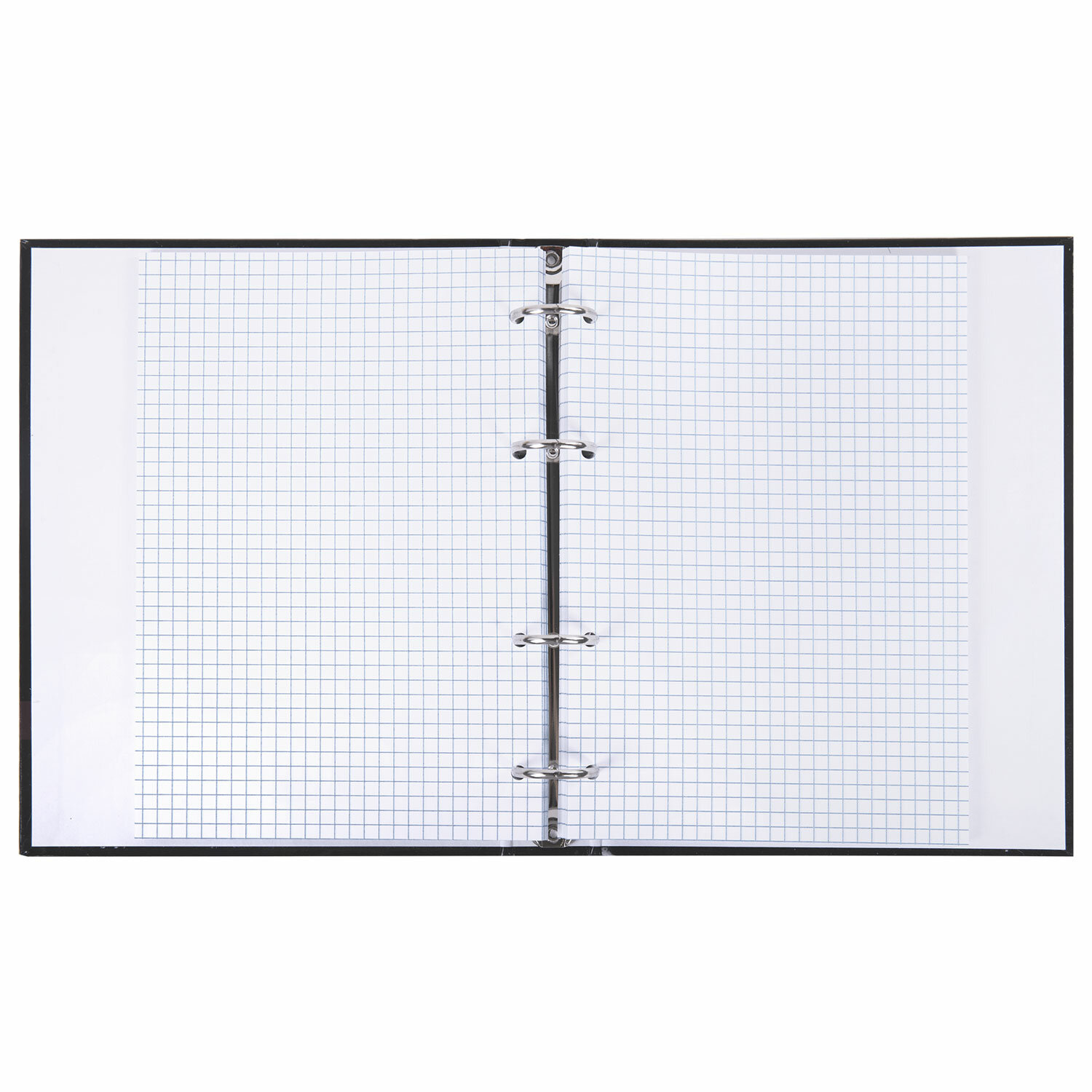 Снабжена кольцевым механизмом с 4 кольцами для подшивки сменных блоков, что позволит брать на учебу/работу всего одну тетрадь с возможностью добавлять и менять листы. Тетрадь на кольцах А5 175х215 мм, 120 л., твердый картон, клетка, BRAUBERG "Minimal black", 404713